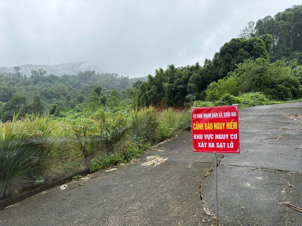 UBND xã Suối Hai đặt biển cảnh báo tại khu vực sạt lở chân núi Ba Vì (ảnh chụp ngày 1/10/2025).