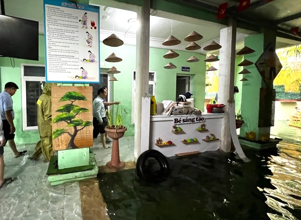 Tại Trường Mầm non Trung Hòa (phường Yên Hòa), một số phòng học, phòng làm việc và khu vực bếp ăn bị ảnh hưởng bởi ngập nước. Nhà trường đã khẩn trương di dời, kê cao thiết bị, đồ dùng, đồ chơi nhằm hạn chế hư hỏng.