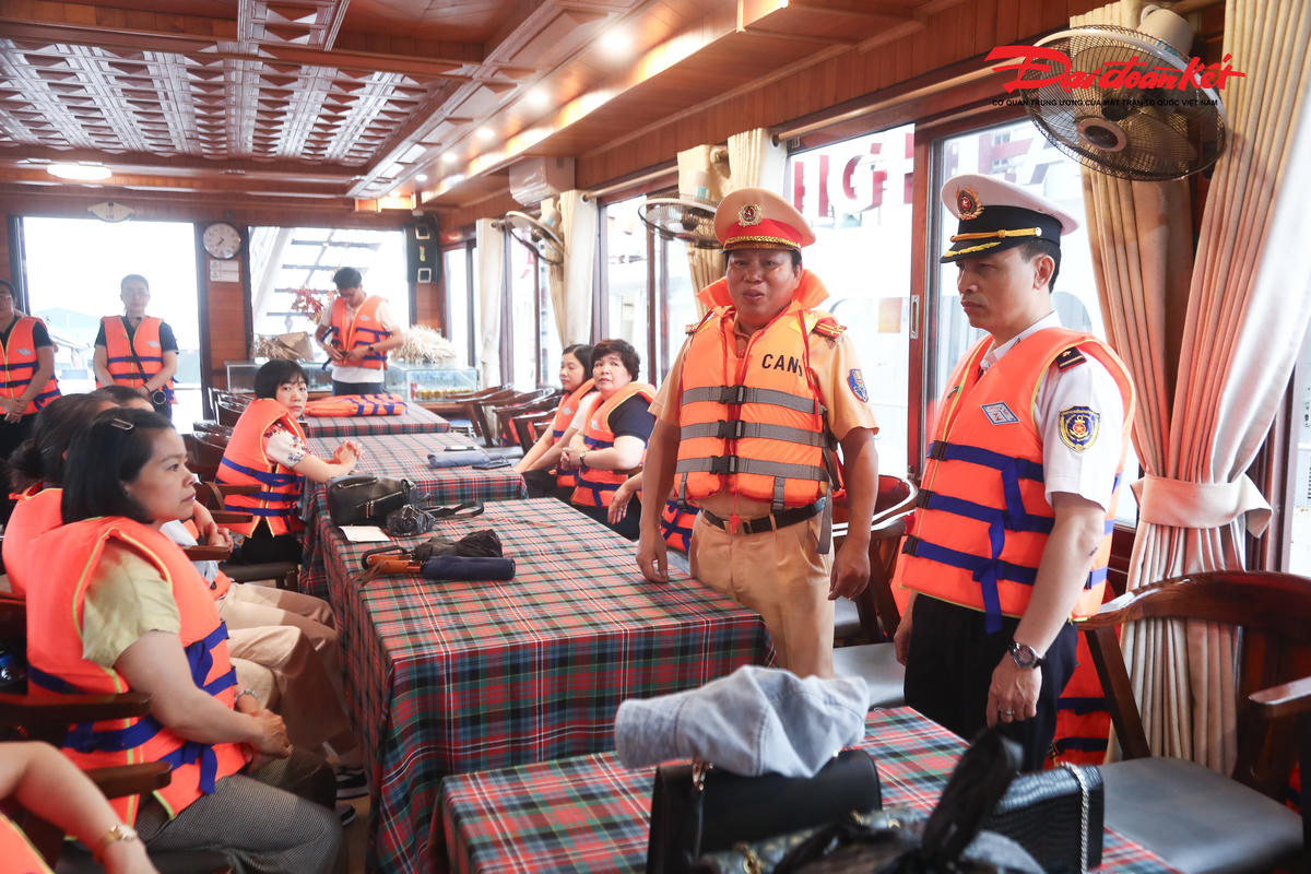 Song song với công tác kiểm tra, lực lượng CSGT đường thủy phối hợp với hướng dẫn viên và chủ tàu trực tiếp tuyên truyền, hướng dẫn hành khách mặc áo phao đúng quy định trước khi tàu rời bến. Nhiều du khách được hướng dẫn cách kiểm tra, điều chỉnh dây áo phao phù hợp, sẵn sàng sử dụng khi có tình huống khẩn cấp, qua đó nâng cao ý thức chấp hành quy định an toàn khi tham gia giao thông đường thủy.