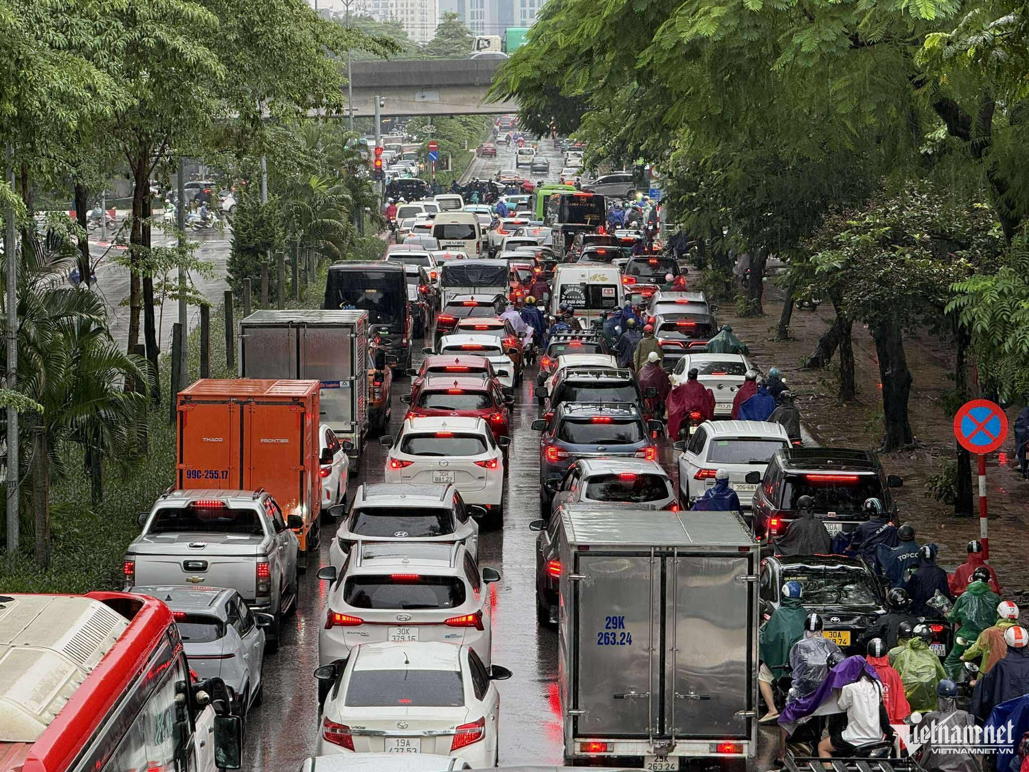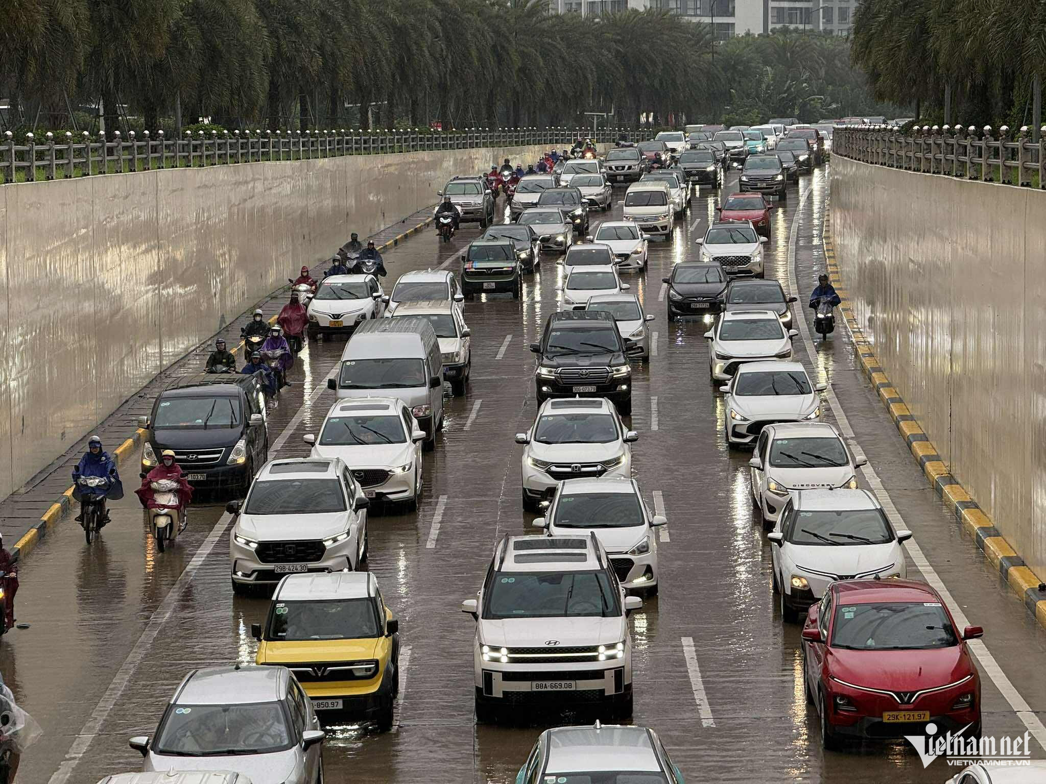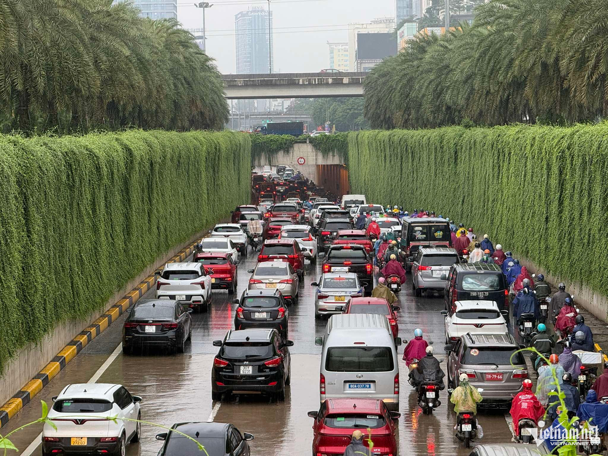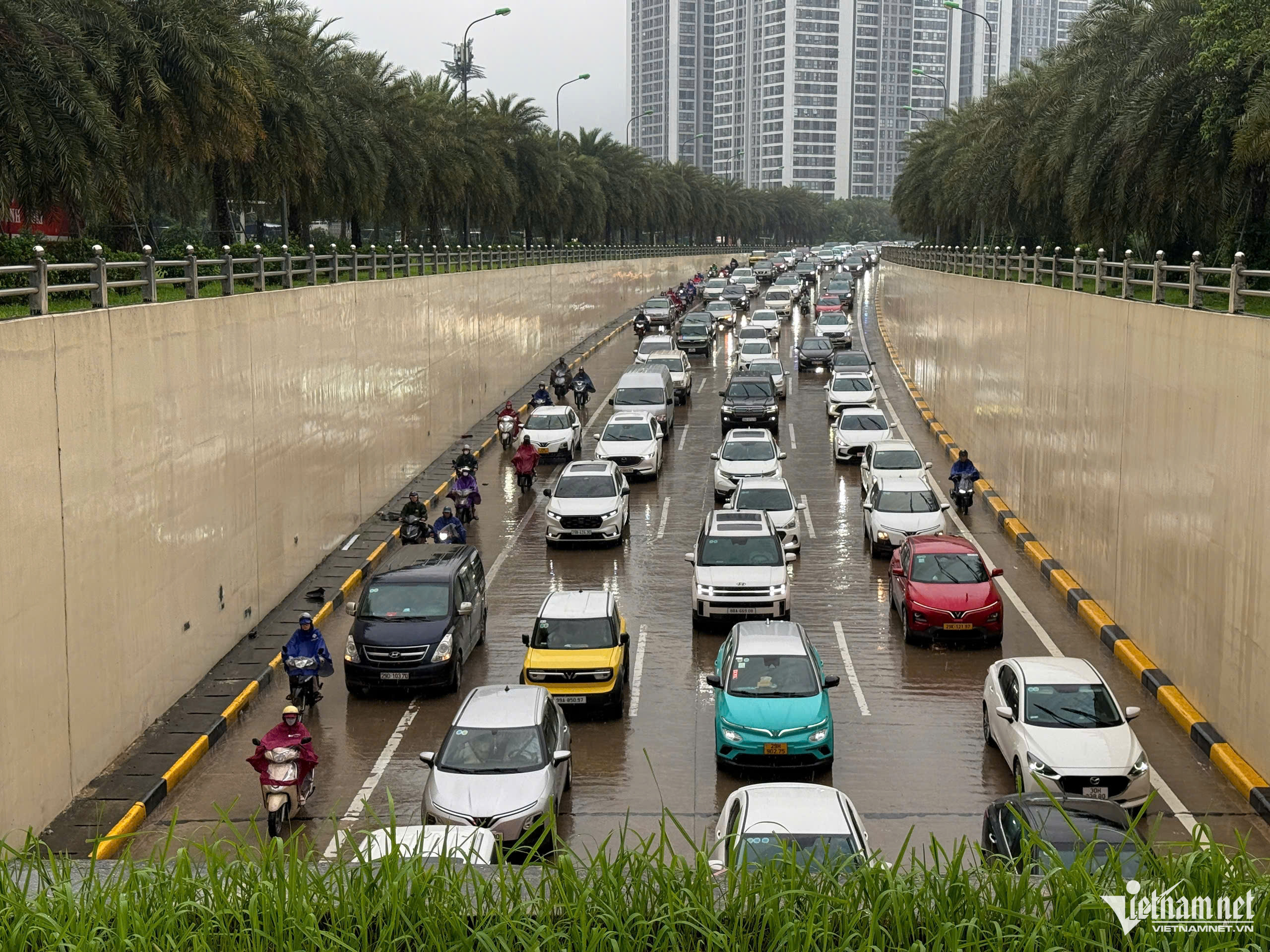 Trên Đại lộ Thăng Long, đoạn qua Trung tâm Hội nghị Quốc gia hướng về Khuất Duy Tiến, tình trạng ùn tắc kéo dài. Dưới hầm chui cùng đoạn đường này cũng xảy ra cảnh tương tự. Tại khu vực trước Sân vận động Quốc gia Mỹ Đình, một số vũng nước lớn bắt đầu xuất hiện, gây cản trở giao thông. Trong khi đó, ở Ngã Tư Sở, hàng trăm phương tiện "chôn chân" dưới cơn mưa