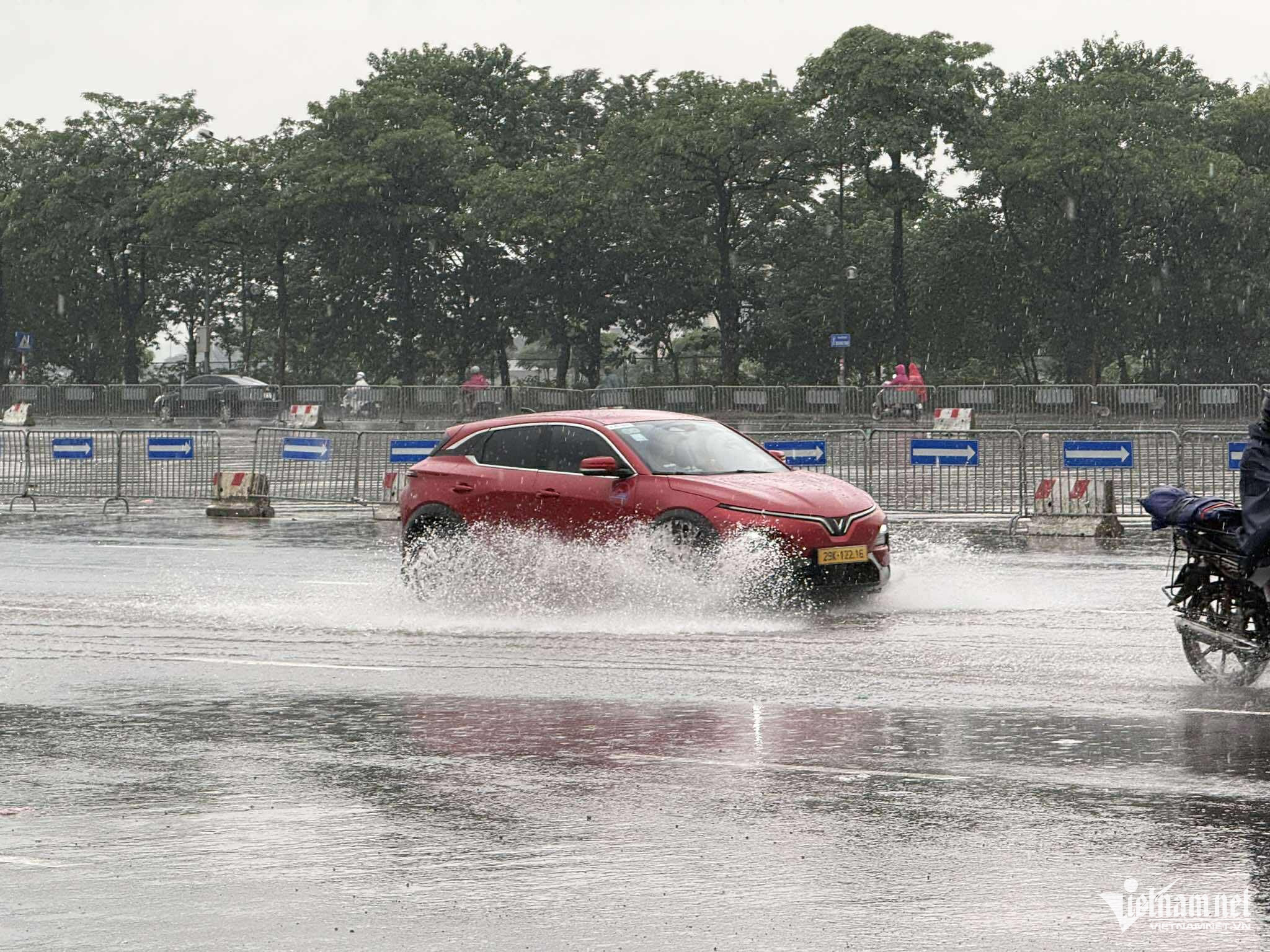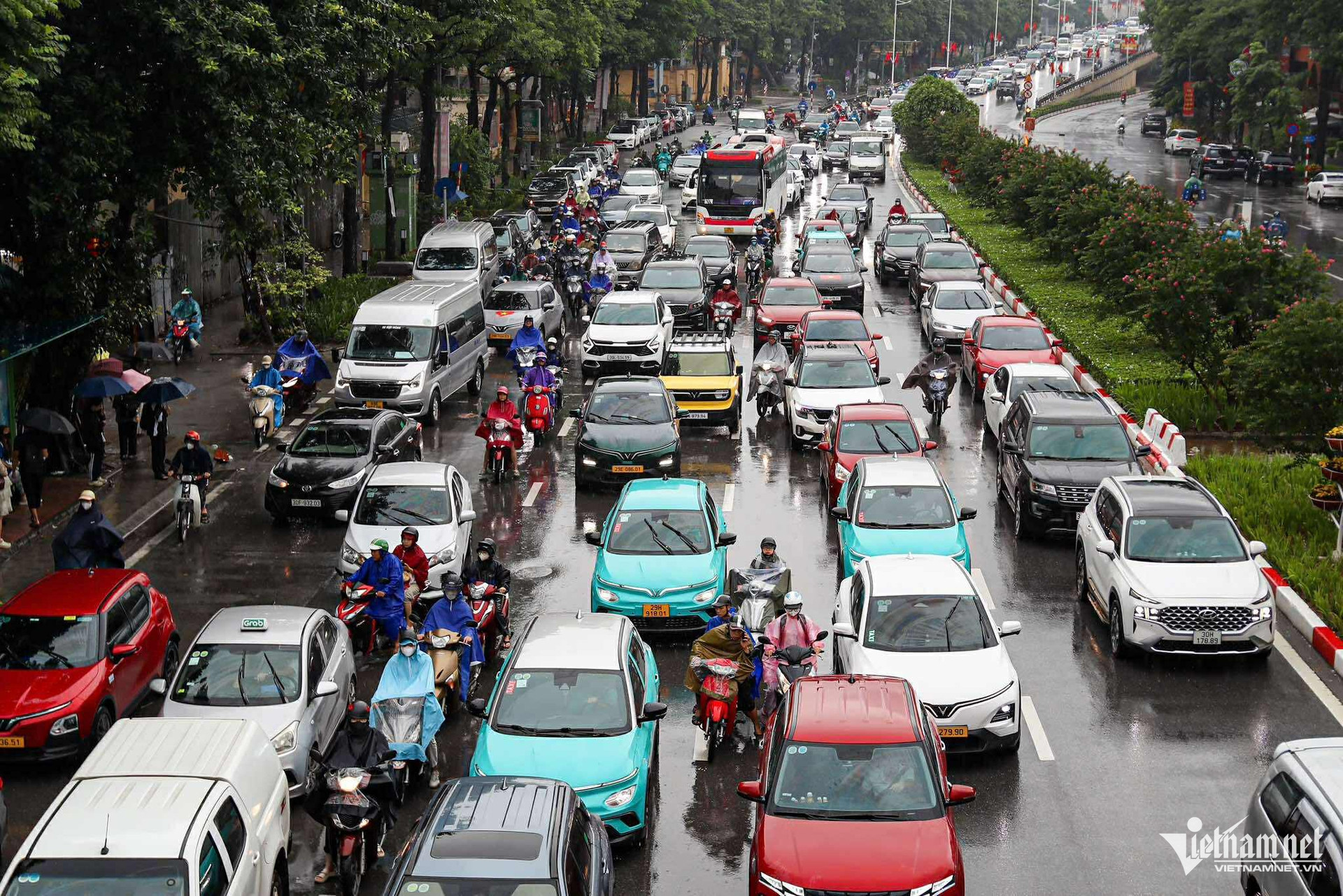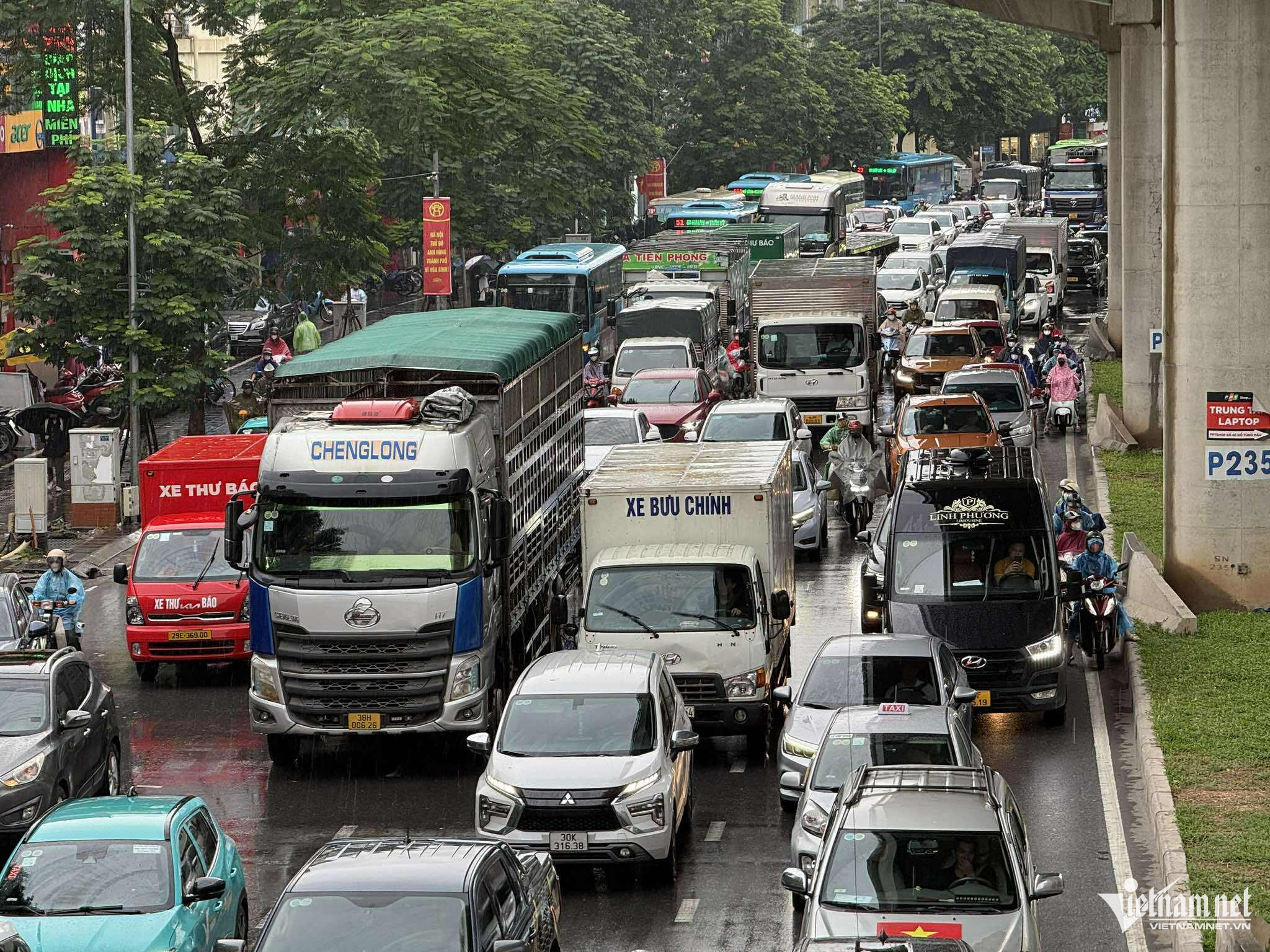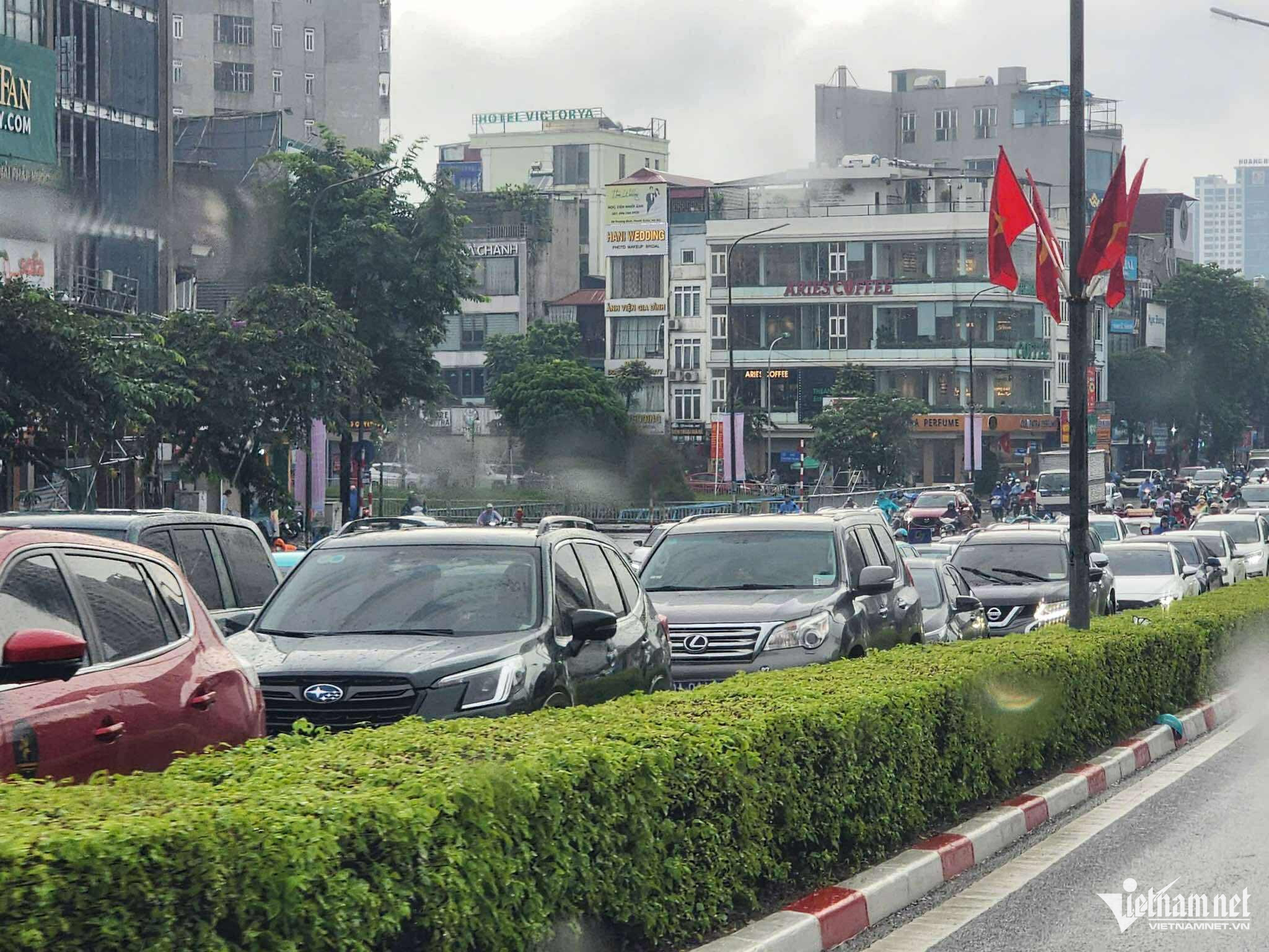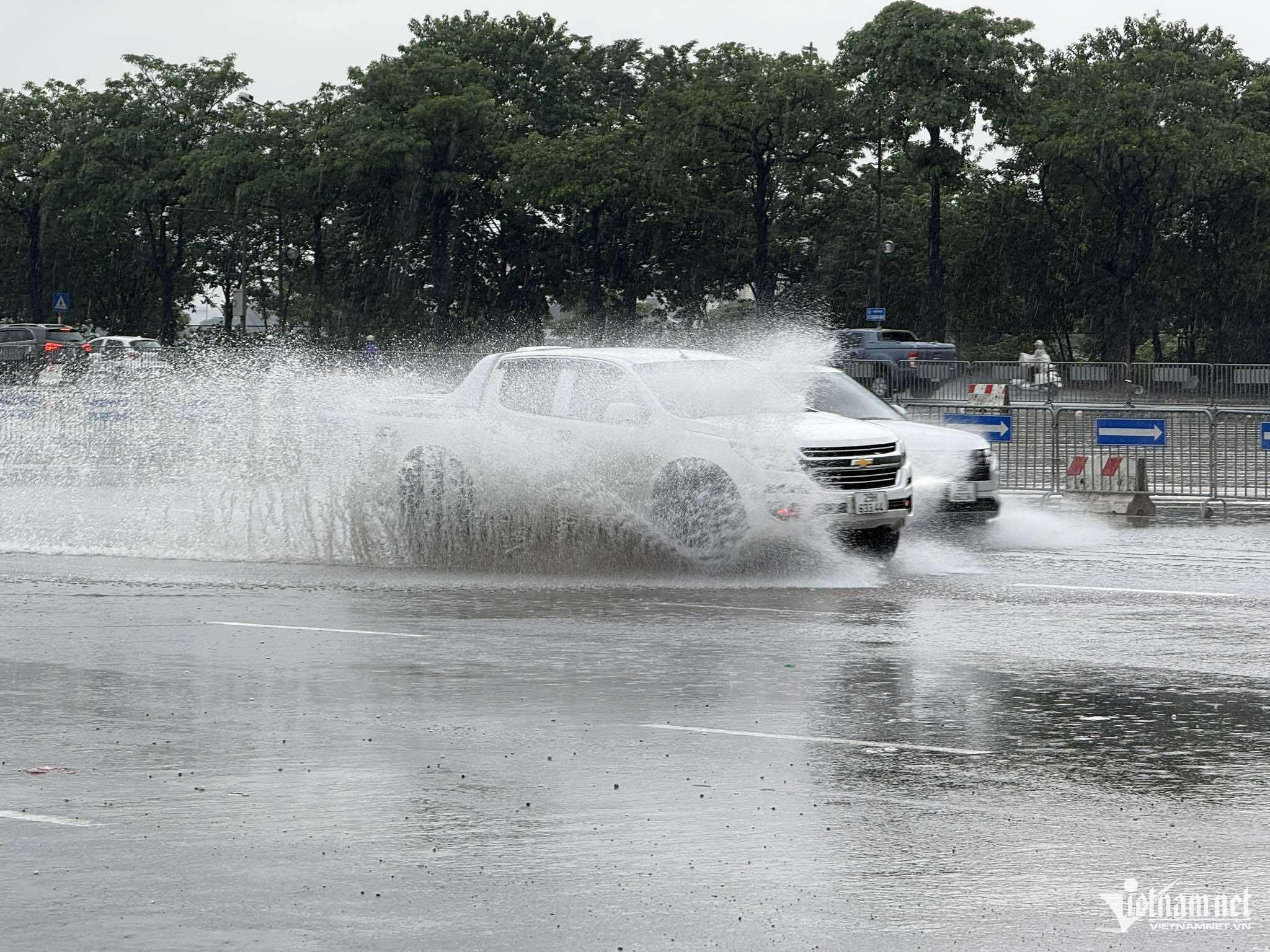 Trên Đại lộ Thăng Long, đoạn qua Trung tâm Hội nghị Quốc gia hướng về Khuất Duy Tiến, tình trạng ùn tắc kéo dài. Dưới hầm chui cùng đoạn đường này cũng xảy ra cảnh tương tự. Tại khu vực trước Sân vận động Quốc gia Mỹ Đình, một số vũng nước lớn bắt đầu xuất hiện, gây cản trở giao thông. Trong khi đó, ở Ngã Tư Sở, hàng trăm phương tiện "chôn chân" dưới cơn mưa