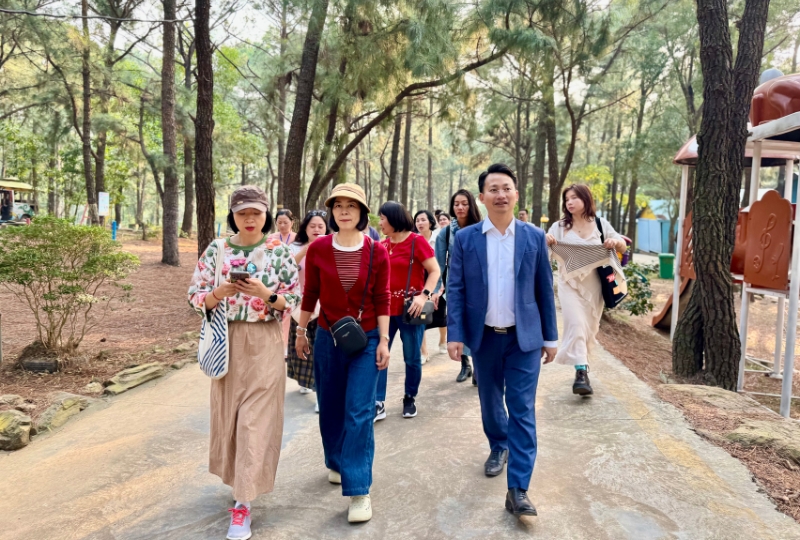 Các đại biểu khảo sát Khu du lịch Thiên Phú Lâm. Ảnh: Hồ Hạ.