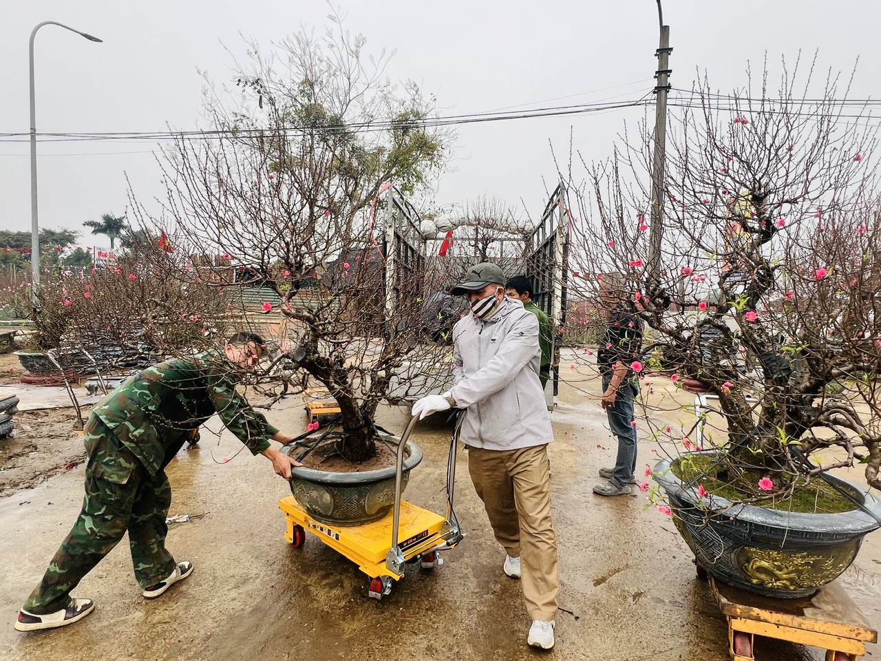 Xe tải nhỏ, xe ba gác ra vào liên tục tại các vườn đào. Những chuyến hàng đầu tiên bắt đầu “xuống phố”, mang theo sắc xuân từ làng nghề lan tỏa khắp các phố phường Hà Nội.