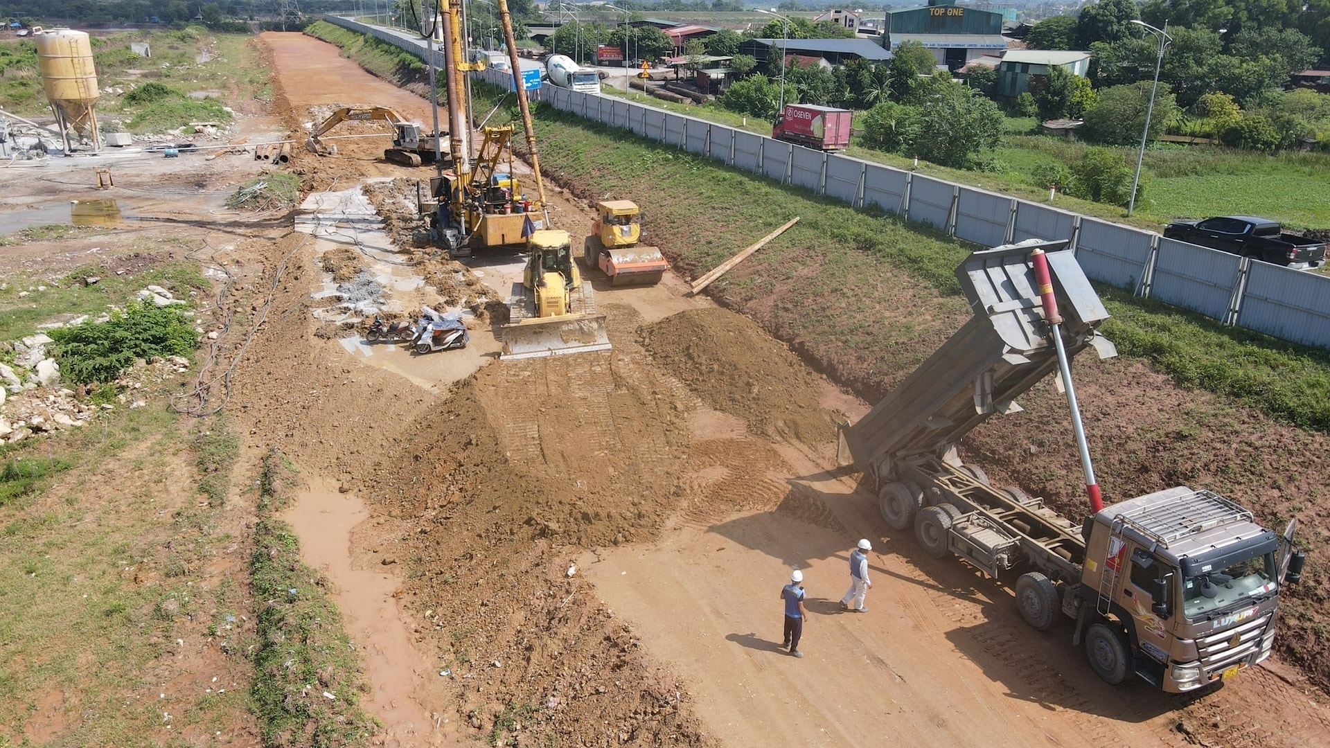 Máy móc, thiết bị tập trung thi công dự án đầu tư xây dựng đường Vành đai 4 - Vùng Thủ đô Hà Nội. Ảnh: Đỗ Tâm
