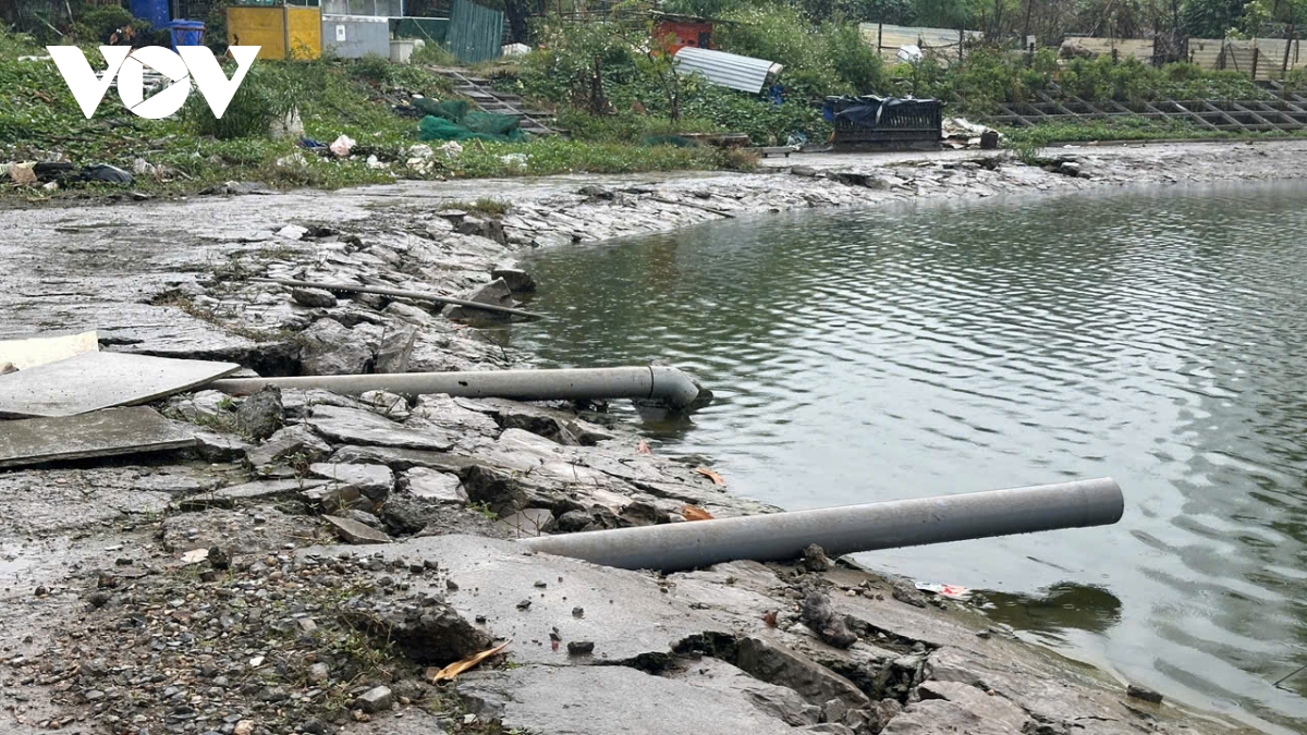 Đường ống cống nước thải từ các hộ dân cư đổ thẳng xuống ao,