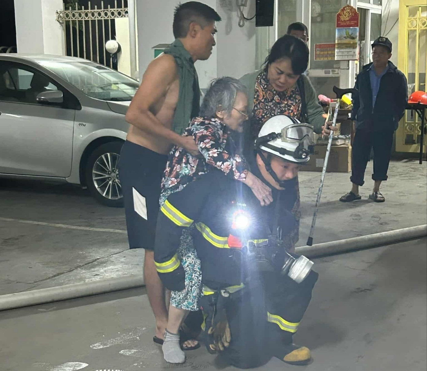 Không lâu sau đó, lực lượng Cảnh sát PCCC&CNCH đã kịp thời khống chế, ngăn cháy lan ra các căn hộ lân cận và hướng dẫn người dân, hỗ trợ đưa 1 người già xuống vị trí an toàn.