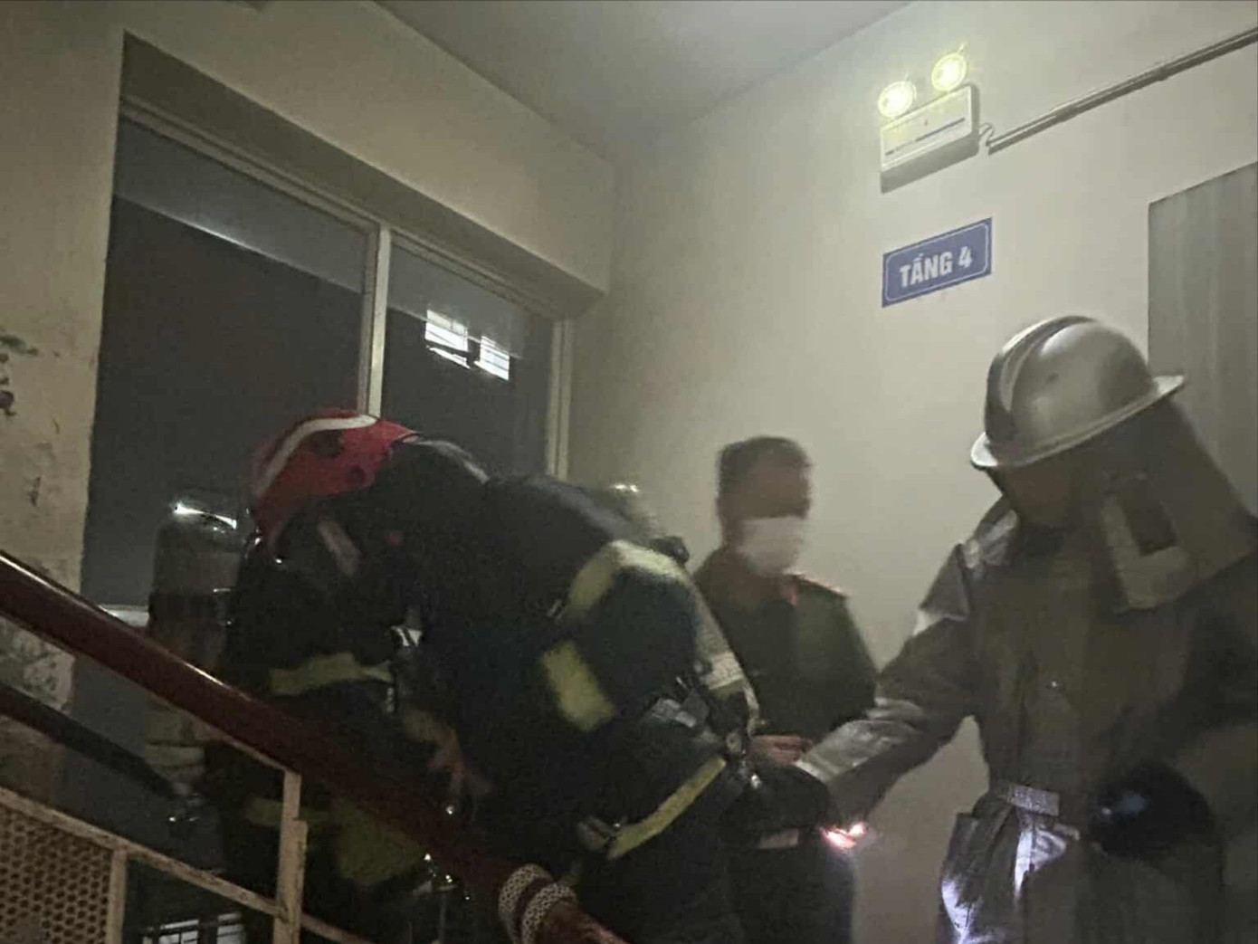 Ngay khi tiếp cận hiện trường, nhận định tình hình đám cháy xuất phát từ phòng ngủ căn 408, tầng 4 chung cư, chỉ huy chữa cháy nhanh chóng chỉ đạo triển khai đội hình trinh sát, sử dụng bình thở chuyên dụng tiếp cận, tìm kiếm người bị nạn, hỗ trợ người dân di chuyển ra khu vực an toàn.