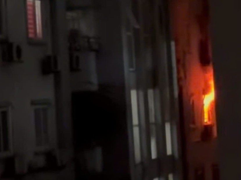 Hình ảnh ngọn lửa bùng lên tại căn hộ tầng 4 chung cư.