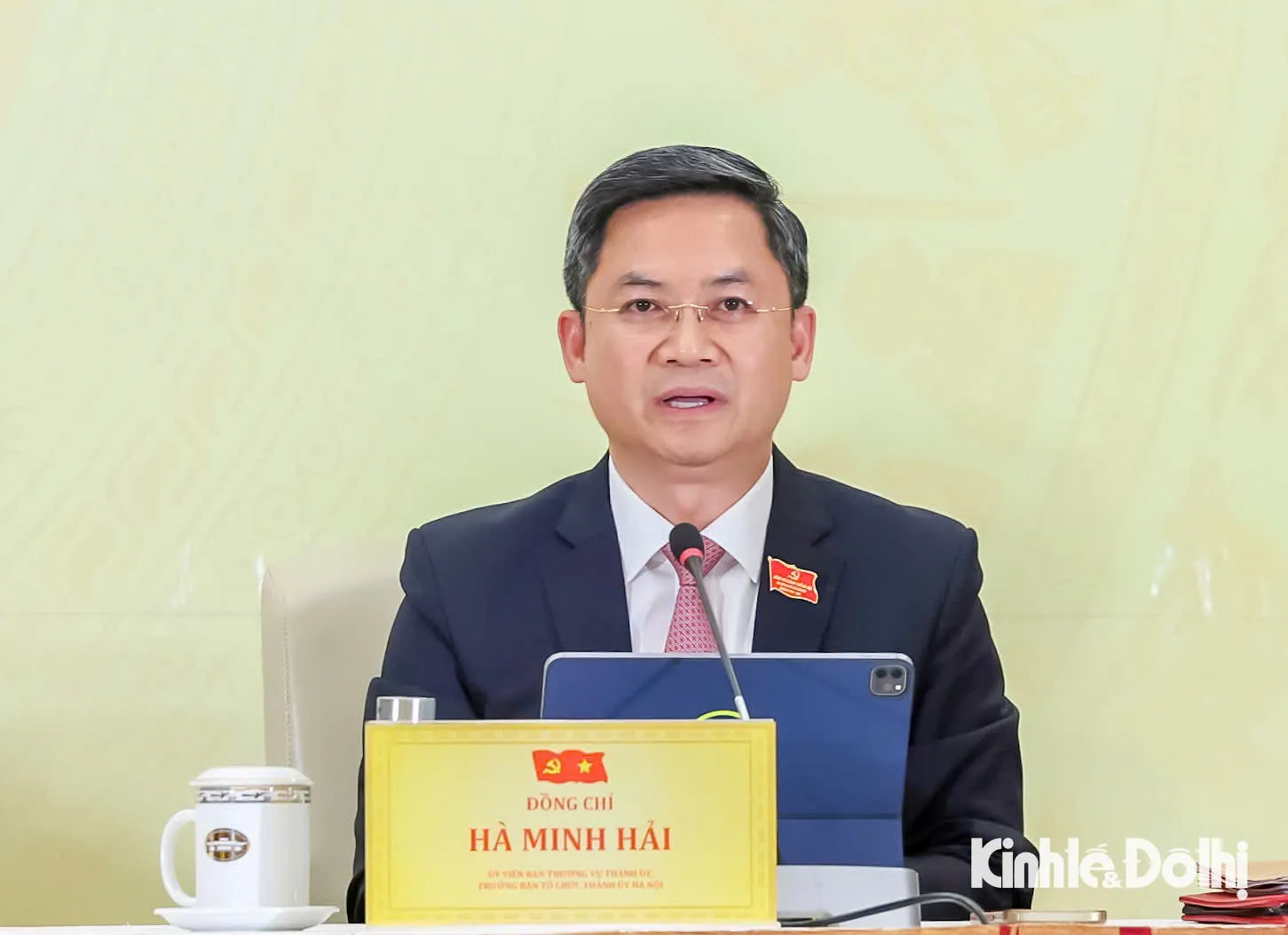 Ủy viên Ban Thường vụ Thành ủy, Trưởng Ban Tổ chức Thành ủy Hà Minh Hải trao đổi tại cuộc họp báo. Ảnh: Thanh Hải