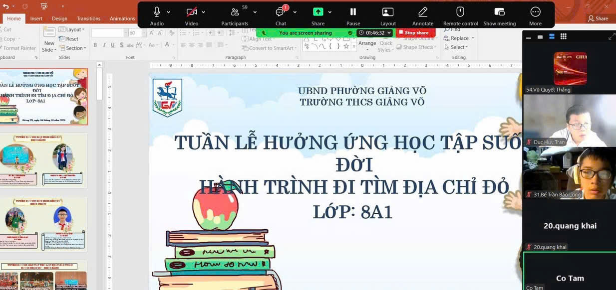 Các em học sinh trường THCS Giảng Võ (Hà Nội) đã có một tiết sinh hoạt vô cùng đặc biệt để tổng kết lại quá trình Hưởng ứng Tuần lễ học tập suốt đời 2025 và cùng nhau đồng hành “Đi tìm địa chỉ đỏ”.