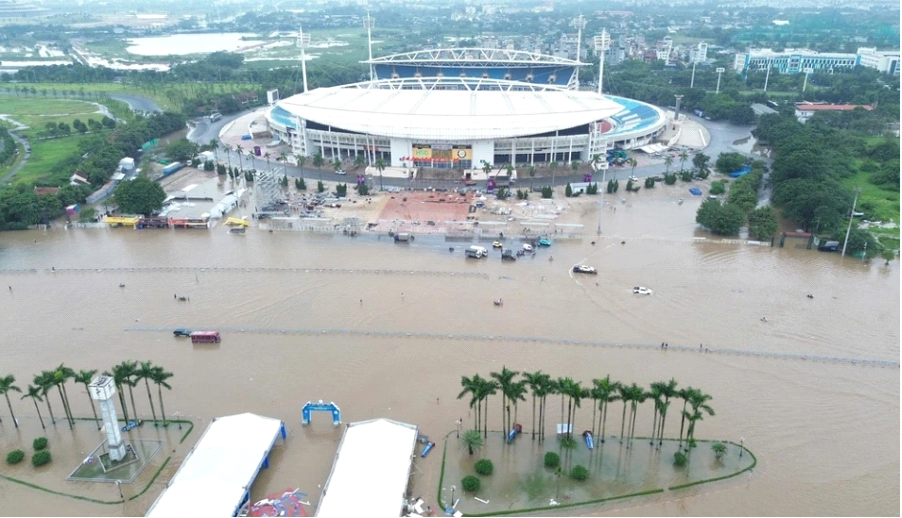 Ngập nặng trên đường Lê Đức Thọ trước cổng SVĐ Mỹ Đình. Ảnh: Quốc Khánh - TTXVN