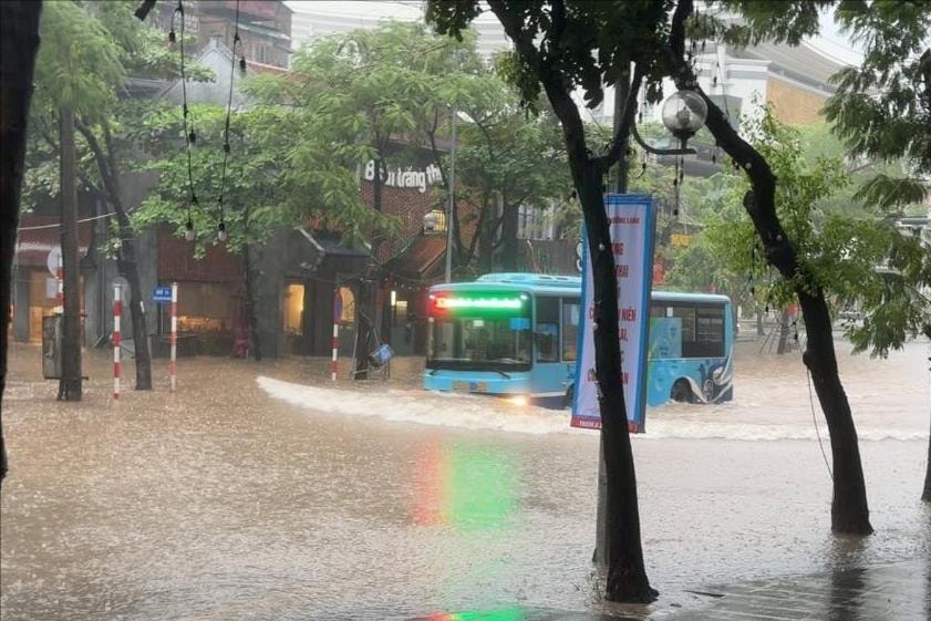 Trung tâm thành phố Hà Nội, người dân đã chia sẻ hình ảnh tại nhiều khu vực ngập sâu từ sáng sớm, người dân khó khăn khi di chuyển, nhiều tuyến phố giao thông gần như tê liệt vì nước ngập.