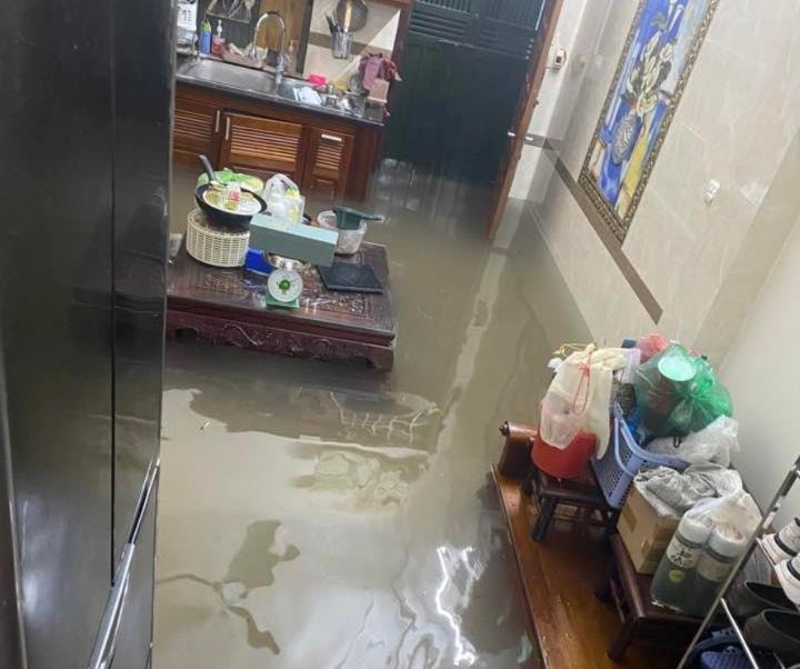 Đồ đạc nổi lềnh bềnh khi nước tràn vào nhà. Ảnh: Phương Thảo