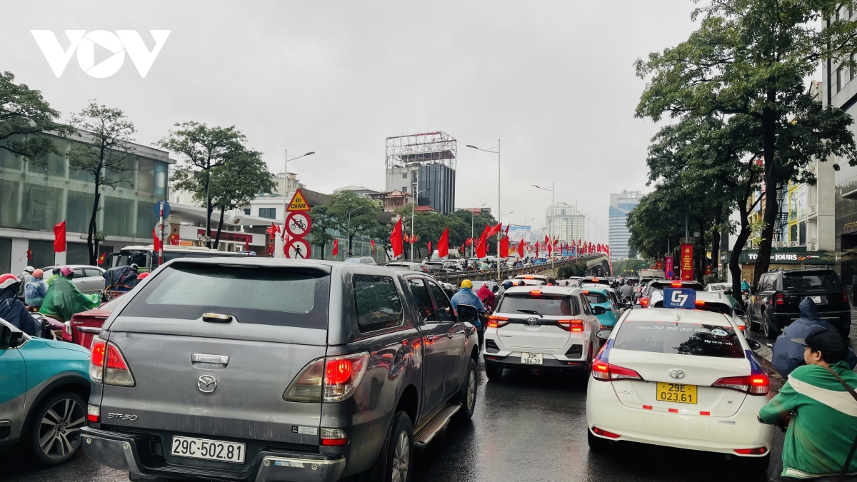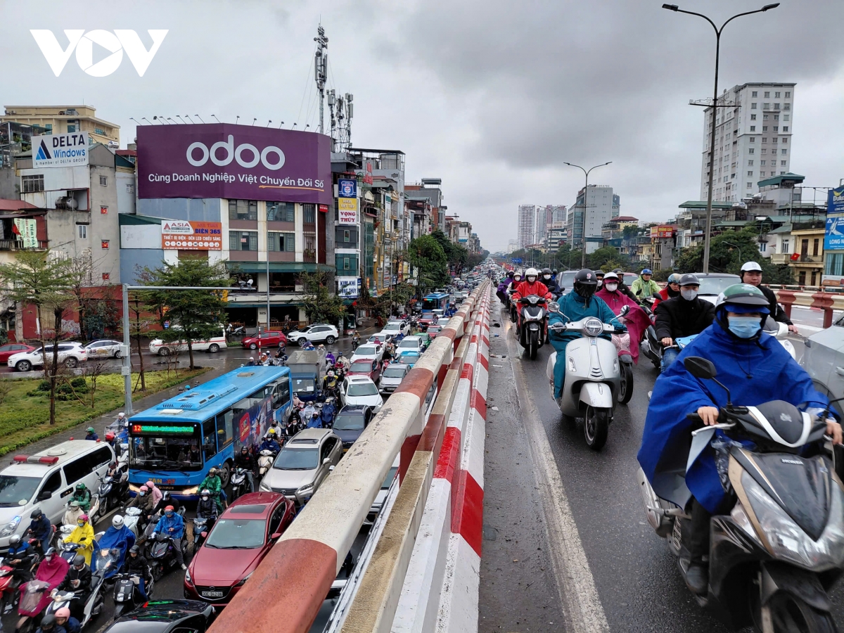 Vào giờ cao điểm sáng nay, đoạn Giải Phóng hướng vào các tuyến phố trung tâm cũng ùn tắc cục bộ, người điều khiển phương tiện di chuyển khó khăn.