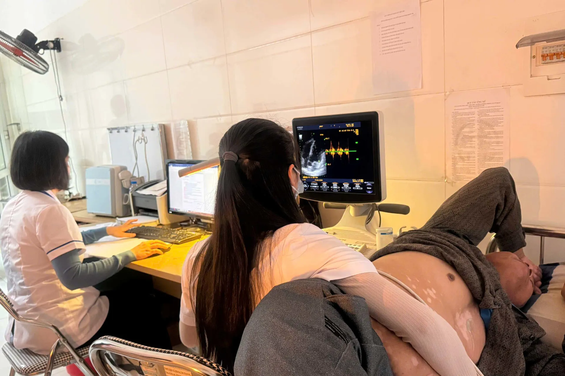 Theo lịch luân phiên hỗ trợ chuyên môn, bác sĩ Phạm Thanh Nhan - Khoa Cấp cứu, chuyên ngành tim mạch, BV Đa khoa Đông Anh trực tiếp đến TYT xã Phúc Thịnh để hỗ trợ kỹ thuật siêu âm tim. Hiện nay, do TYT xã chưa có bác sĩ chuyên sâu về lĩnh vực này nên việc bác sĩ tuyến trên trực tiếp về cơ sở không chỉ giúp người dân được tiếp cận dịch vụ KCB chất lượng ngay tại địa phương, mà còn giảm chi phí, thời gian đi lại cho người bệnh.