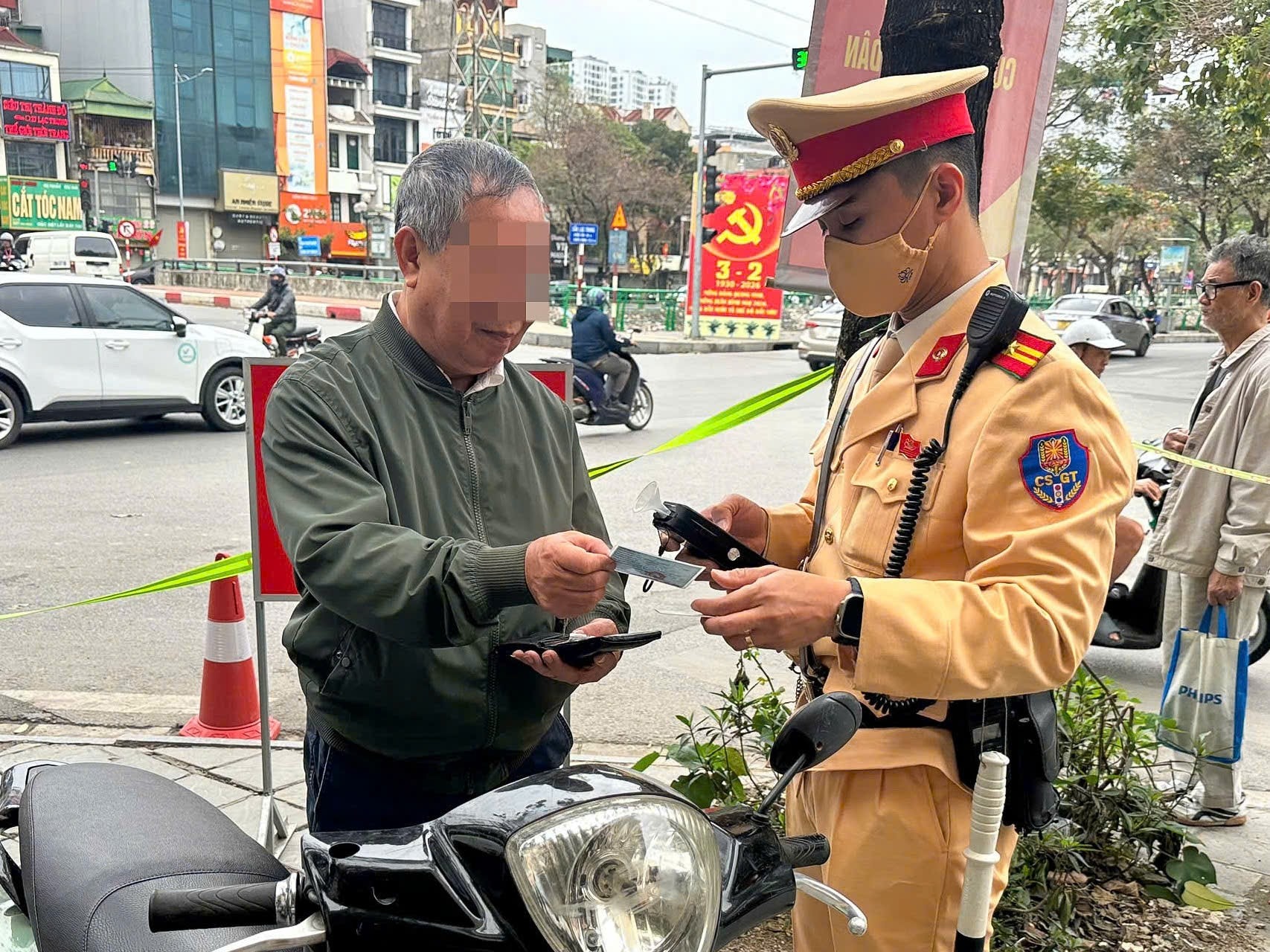 Cụ thể, hồi 14h16, tổ công tác phát hiện chị H.H.P (sinh năm 1980, trú tại Hà Nội điều khiển xe mô tô BKS 29F1-462xx vi phạm nồng độ cồn ở mức 0,341 mg/L khí thở (mức 2 theo quy định hiện hành). Quá trình làm việc, người này cũng không xuất trình được Giấy phép lái xe.