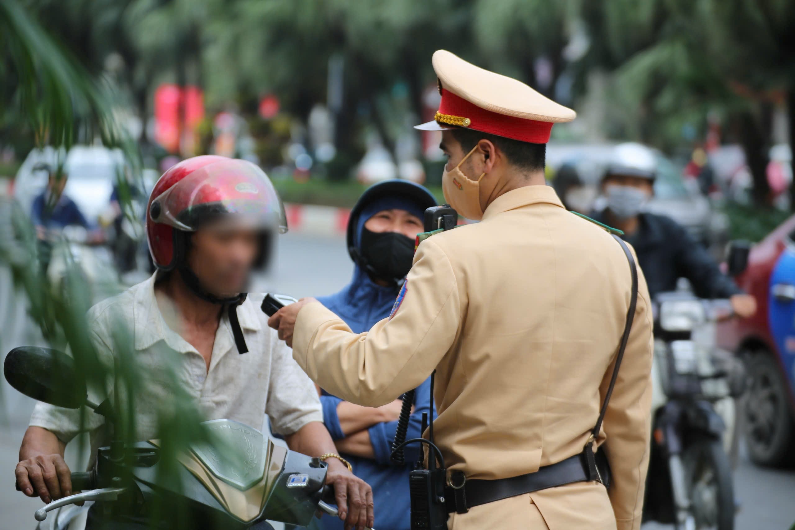 Tại phố Thanh Nhàn, tổ công tác thuộc Đội CSGT đường bộ số 4 cũng bố trí lực lượng kiểm soát nồng độ cồn. Ca công tác đã phát hiện 6 trường hợp điều khiển xe mô tô vi phạm nồng độ cồn, trong đó có 2 trường hợp vi phạm vượt quá 0,4 mg/L khí thở.