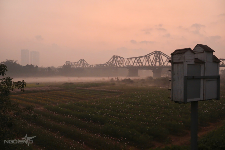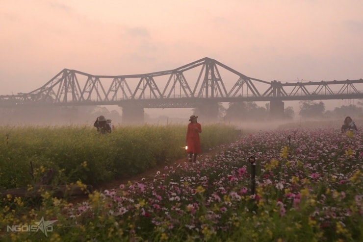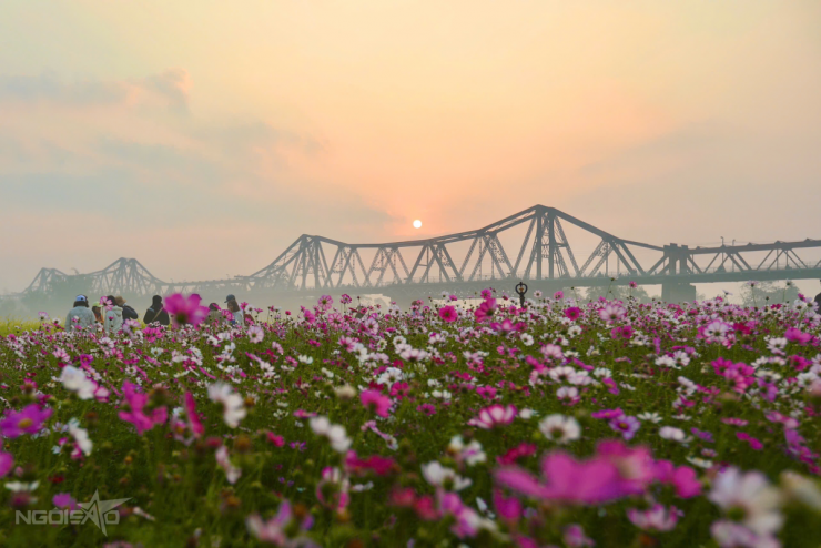Dù thời tiết Hà Nội duy trì ở mức 10 - 13 độ C, từ 5h đến 6h sáng, bến hoa đã tấp nập người đến chờ đón những tia nắng đầu tiên. So với các năm trước, năm nay vườn hoa được đầu tư đa dạng hơn với hoa cánh bướm và đặc biệt là các luống hướng dương đang độ nở rộ.