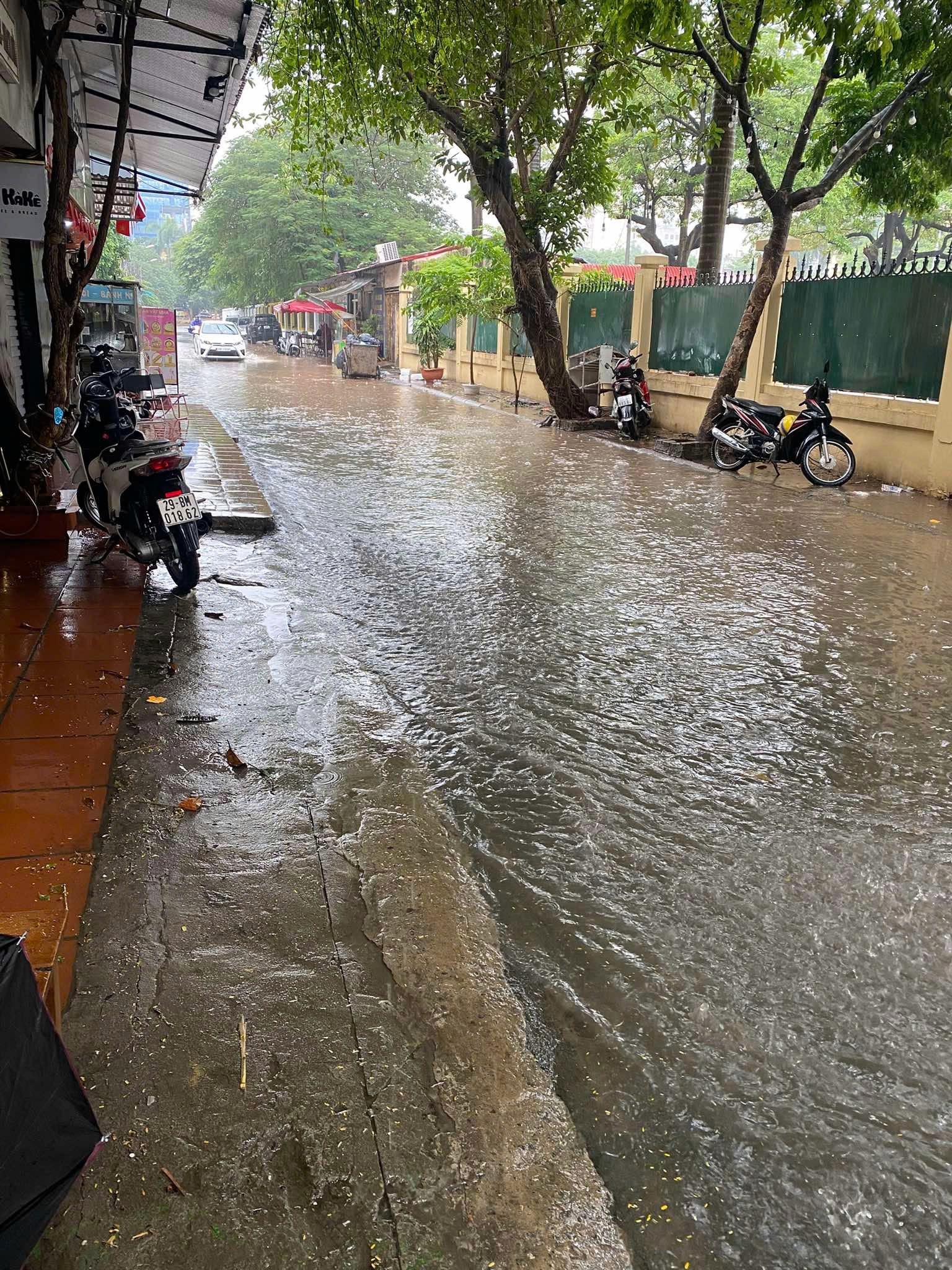 Trên đường Hồ Tùng Mậu gần Học viện Múa Việt Nam, chị Kim Chi chia sẻ cơn mưa lớn cũng khiến một đoạn đường bị ngập nhẹ song vì trời tạnh nhanh, khu vực nhanh chóng rút nước và trở lại thông thoáng.