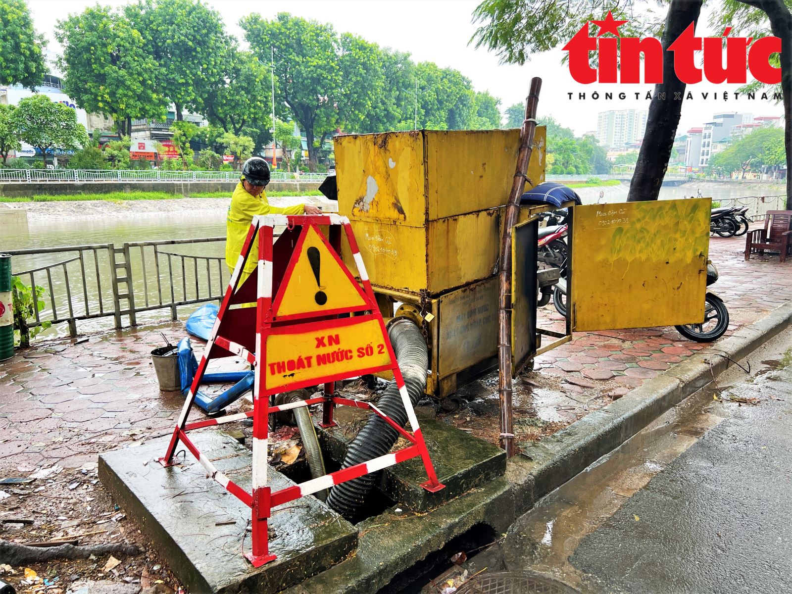 Nước mưa được tiêu thoát ra sông Tô Lịch nhanh chóng.