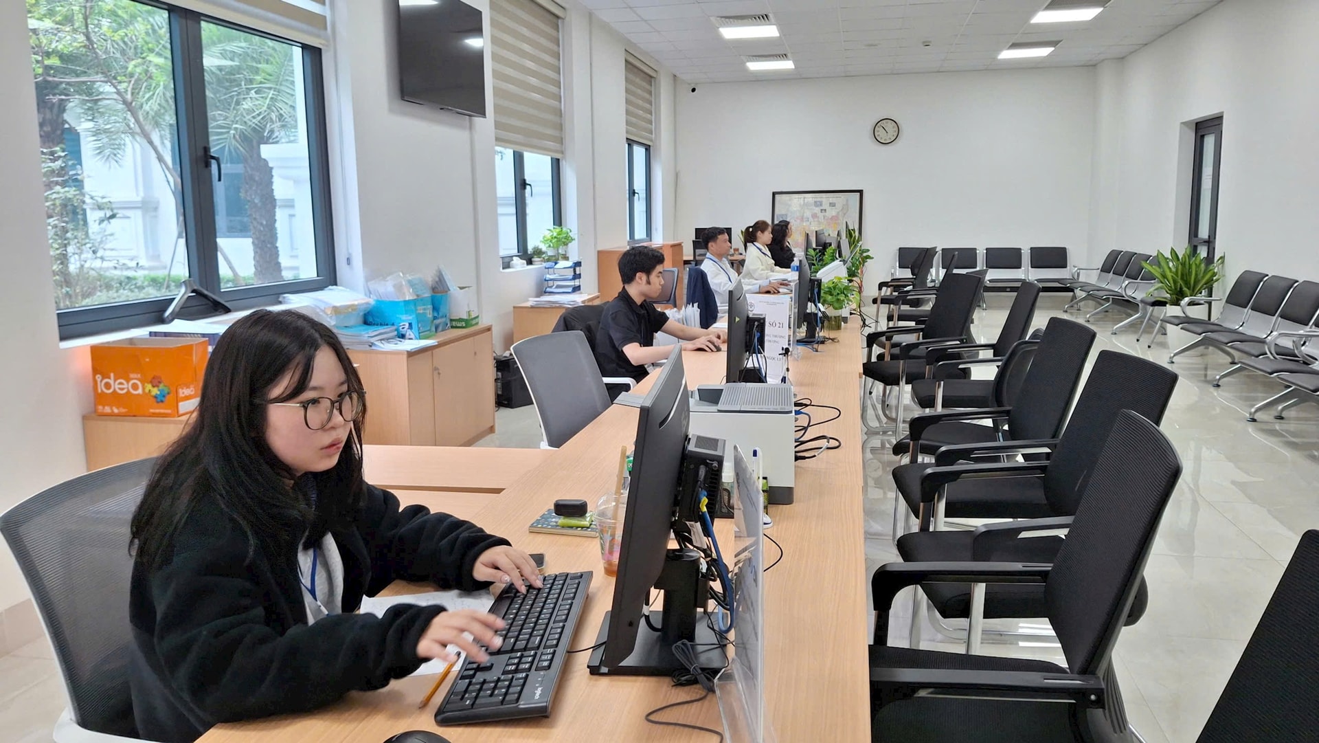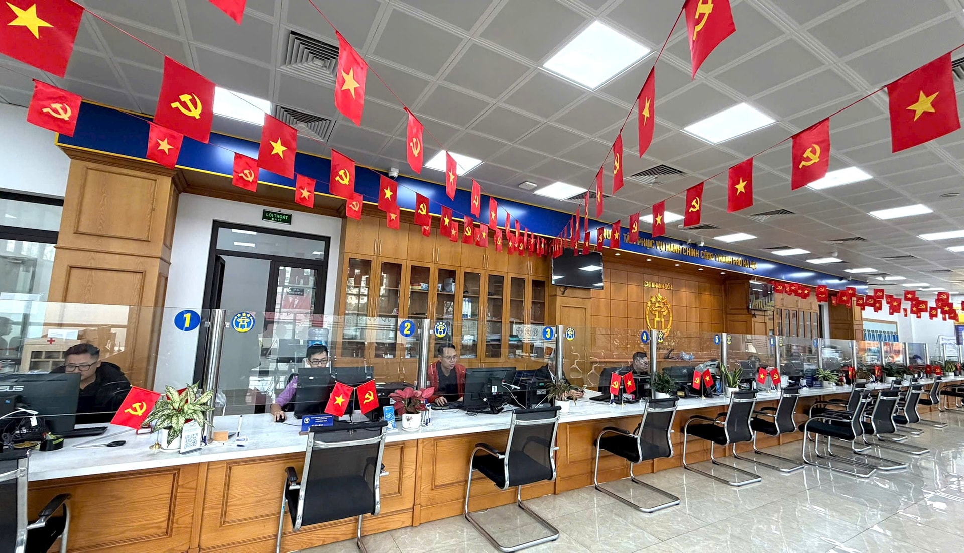 Quang cảnh tại Chi nhánh số 4, Trung tâm Phục vụ hành chính công thành phố Hà Nội. Ảnh: Hiền Chi