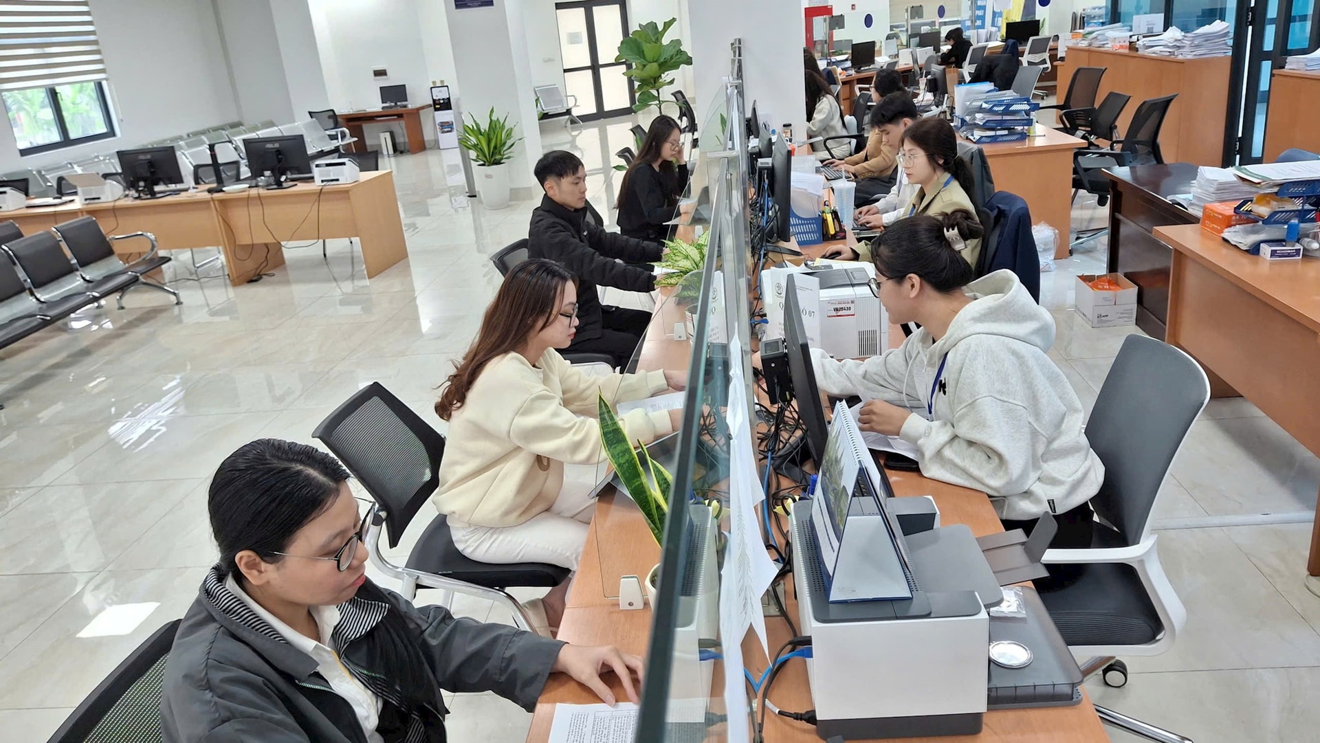 Chi nhánh số 2, Trung tâm Phục vụ hành chính công thành phố Hà Nội trong buổi làm việc cuối cùng trước kỳ nghỉ Tết Nguyên đán Bính Ngọ 2026. Ảnh: Hiền Chi