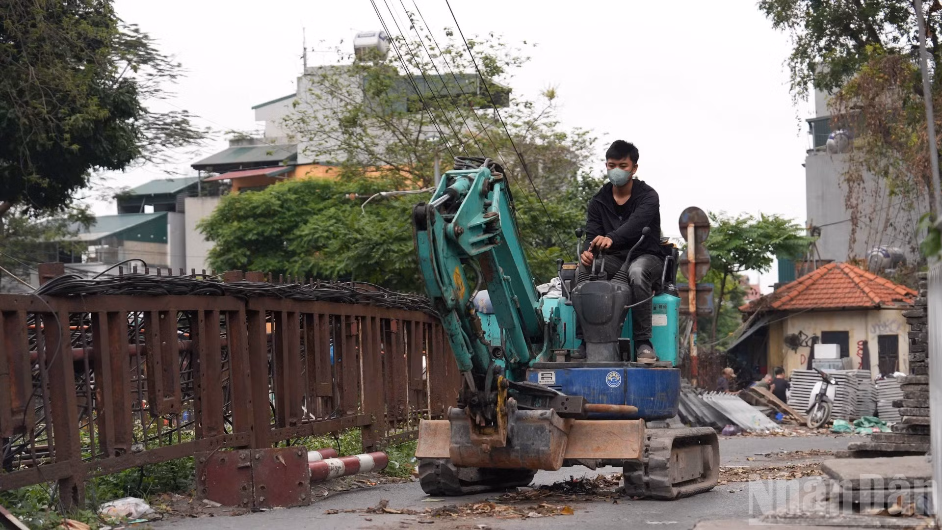 Không còn cảnh phương tiện qua lại tấp nập, cầu Long Biên trở nên yên tĩnh hiếm thấy giữa nhịp sống đô thị.