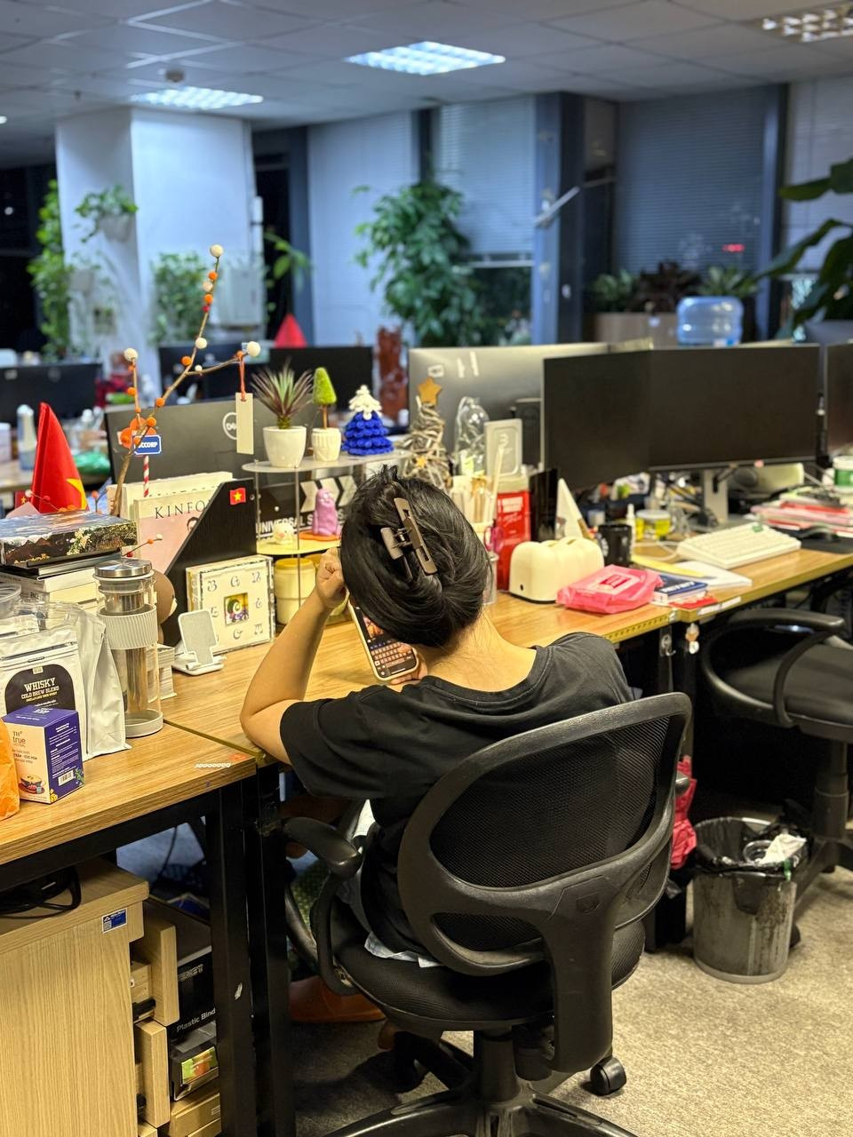 Nhiều người tranh thủ nhắn tin về cho gia đình, cập nhật tình hình liên tục tại công ty qua đêm.