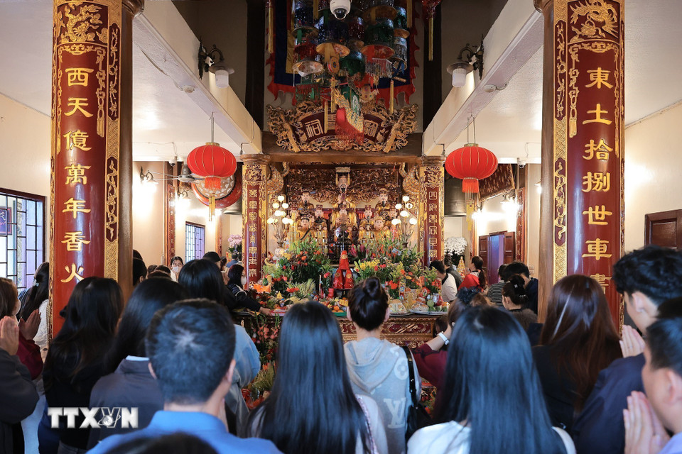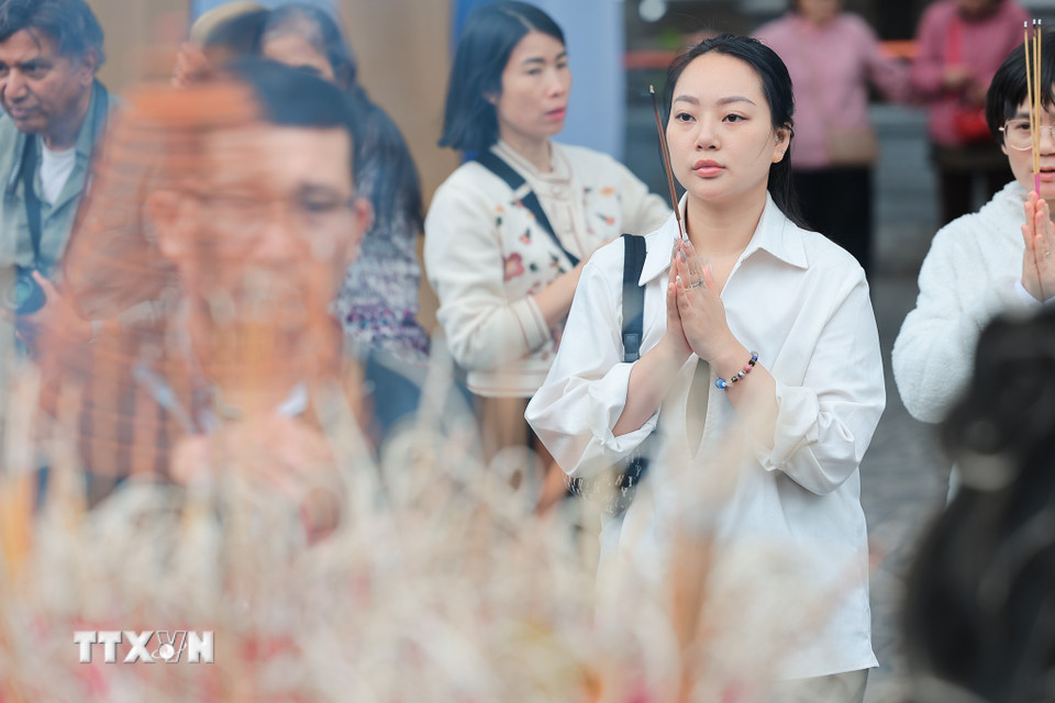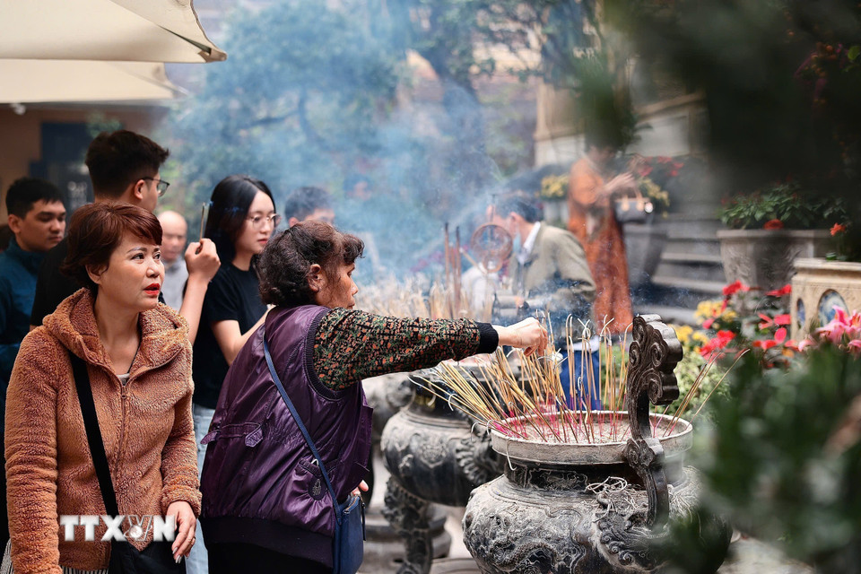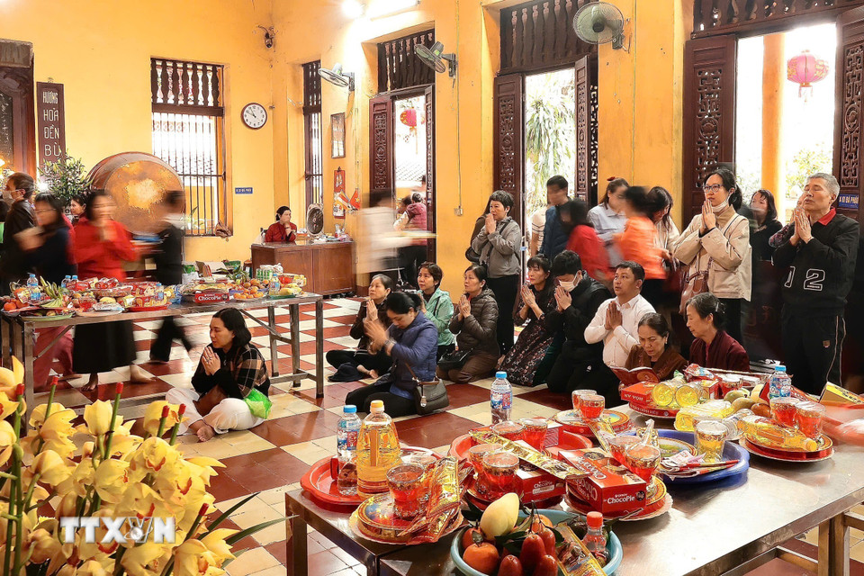 Rằm tháng Giêng là một ngày lễ quan trọng của người Việt, mọi người đến lễ chùa để cầu mong sự may mắn, bình an. (Ảnh: Lê Đông/TTXVN)