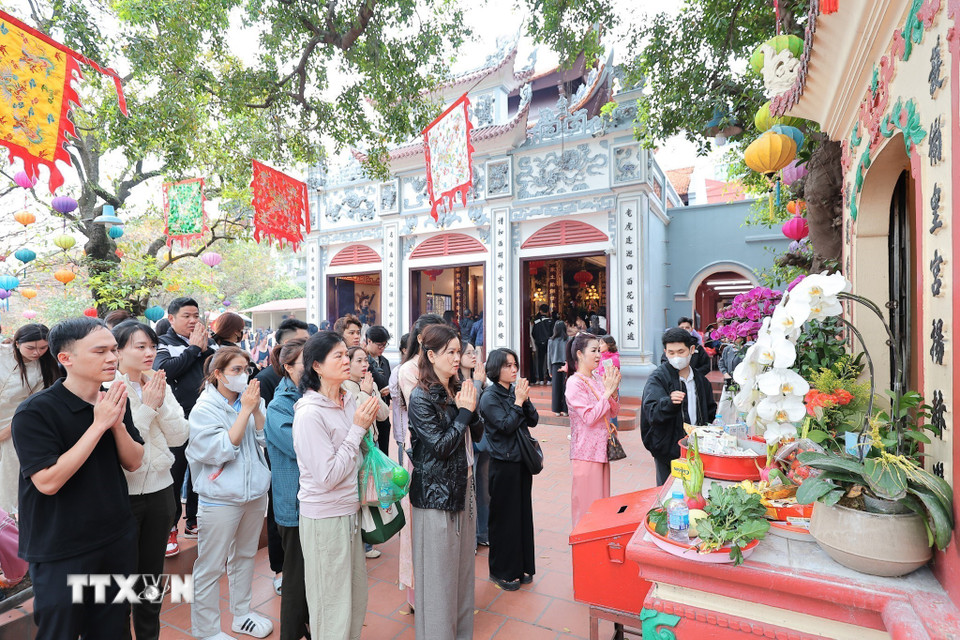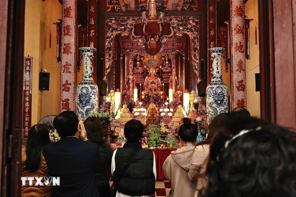 Người dân đi lễ tại Phủ Tây Hồ (Hà Nội) ngày Rằm tháng Giêng. (Ảnh: Lê Đông/TTXVN)