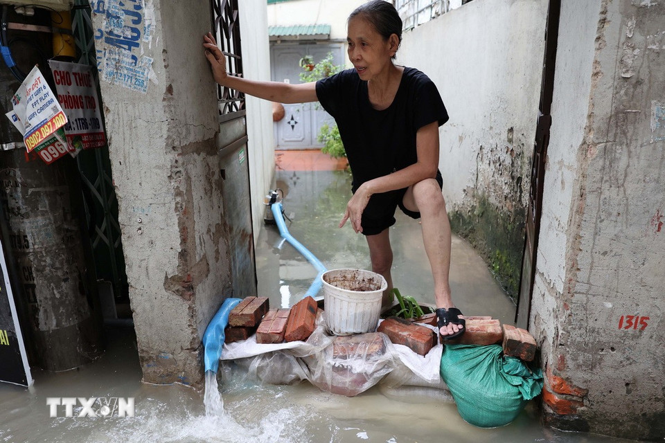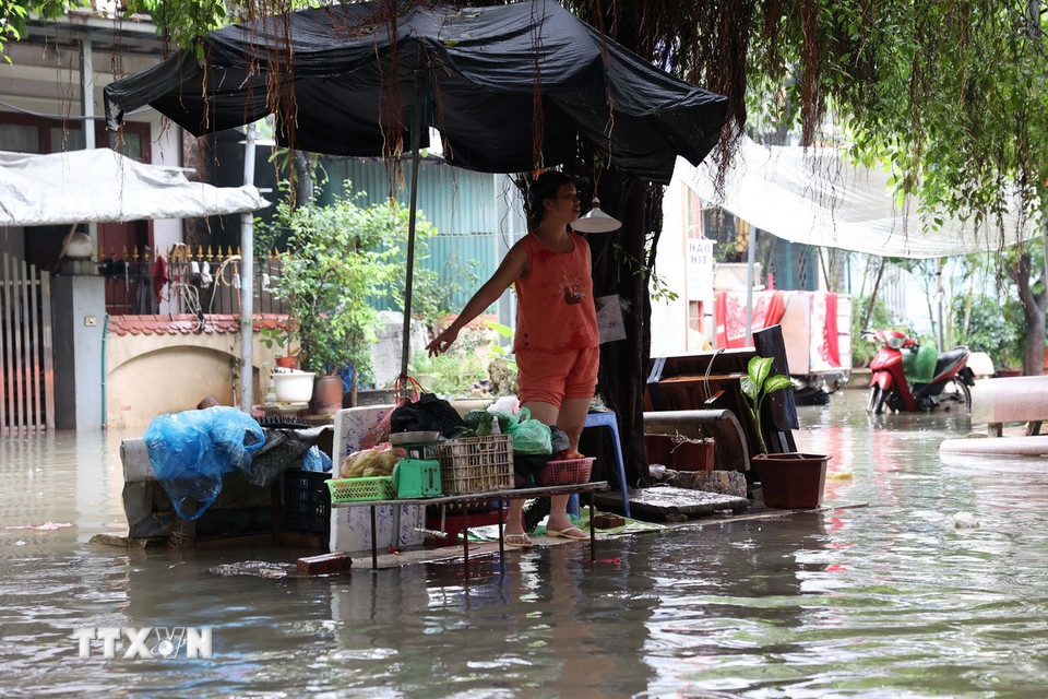 Mưa ngập khiến việc sinh hoạt của người dân gặp nhiều khó khăn. (Ảnh: Vũ Quang/TTXVN)