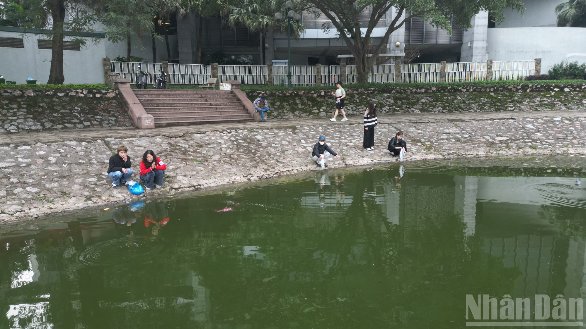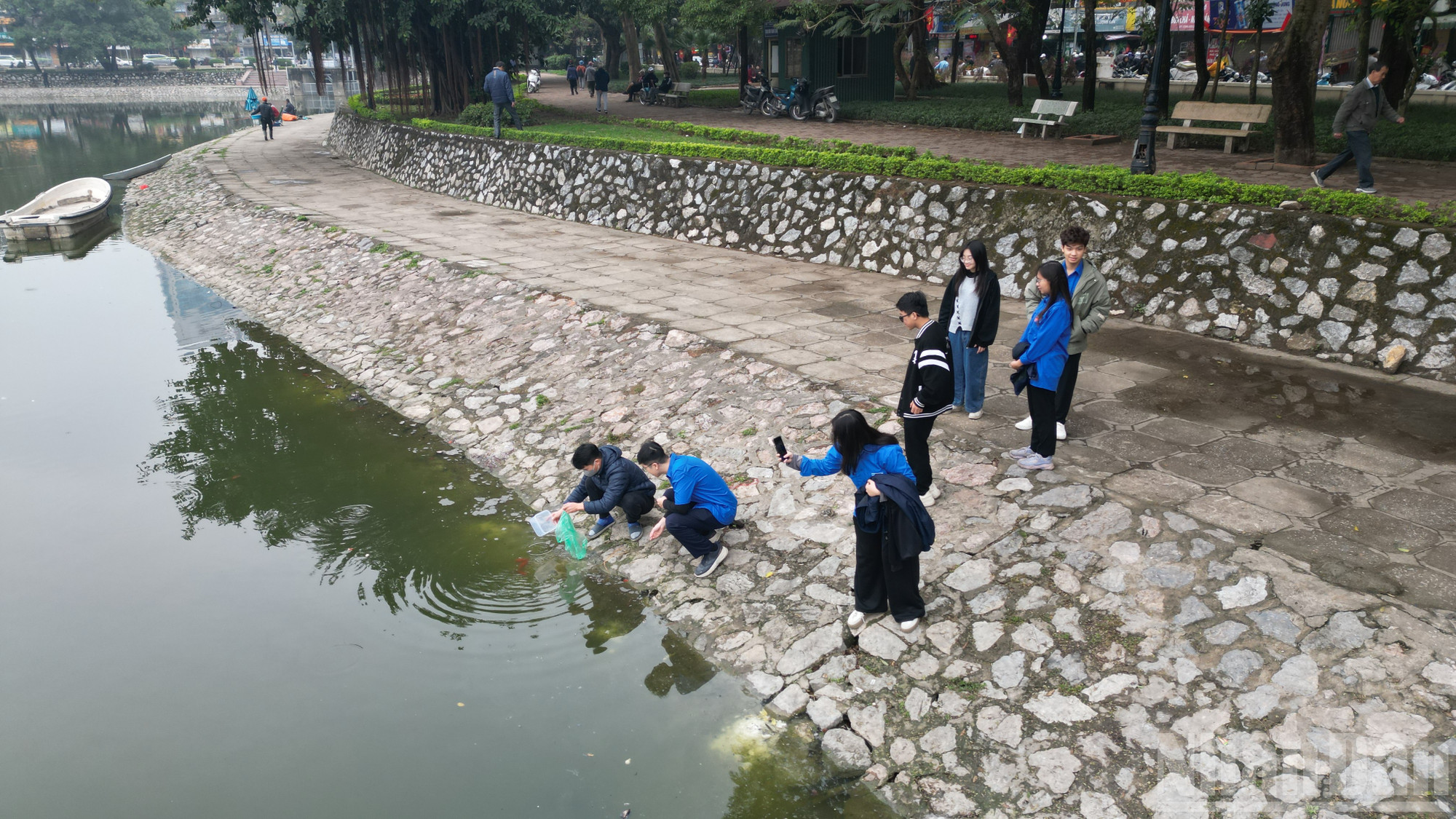 Người dân thả cá chép tiễn ông Công, ông Táo tại hồ Thành Công theo cách văn minh, thả cá nhẹ nhàng, không xả túi nylon, góp phần giữ gìn môi trường và gìn giữ nét đẹp phong tục truyền thống.