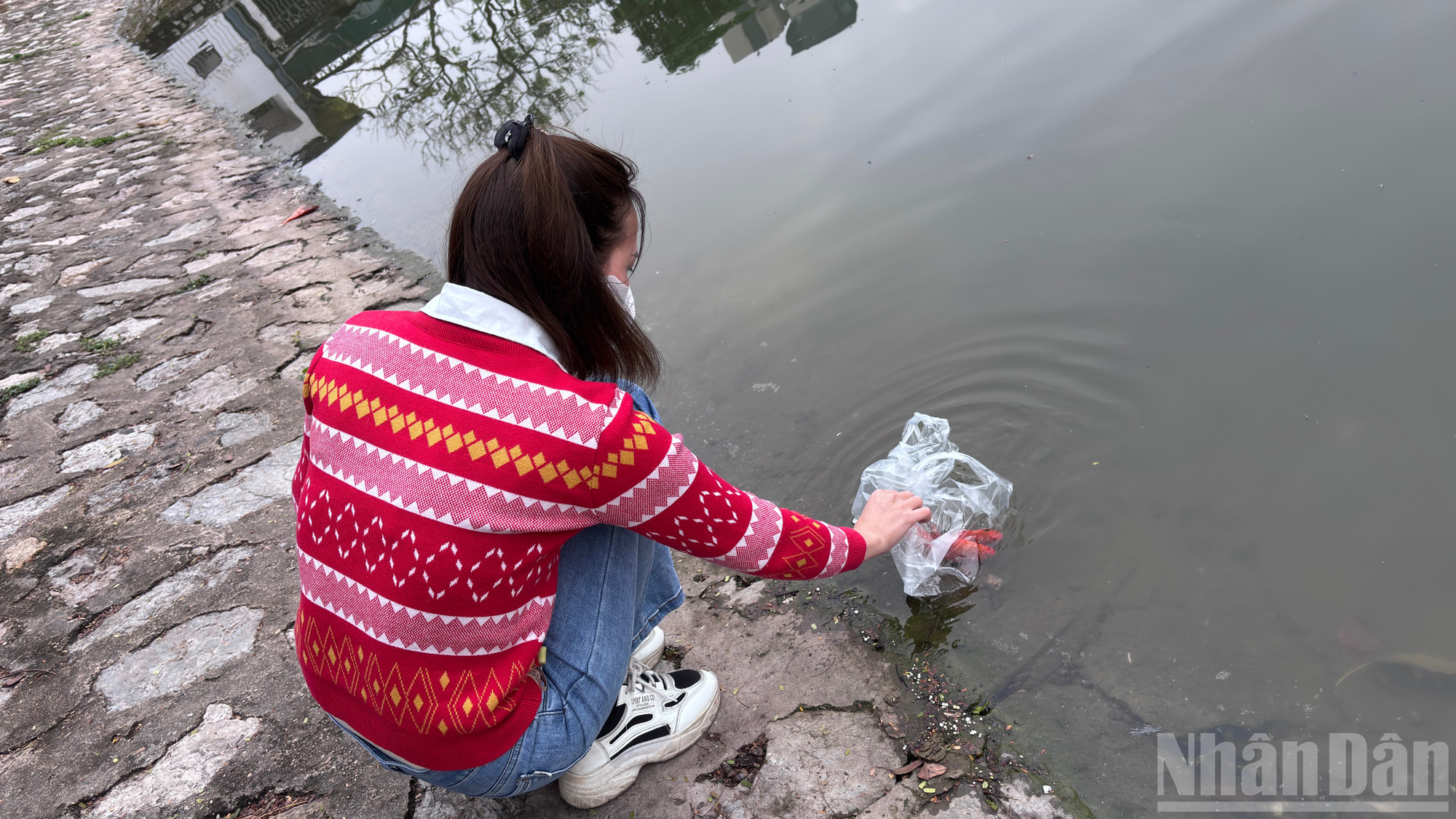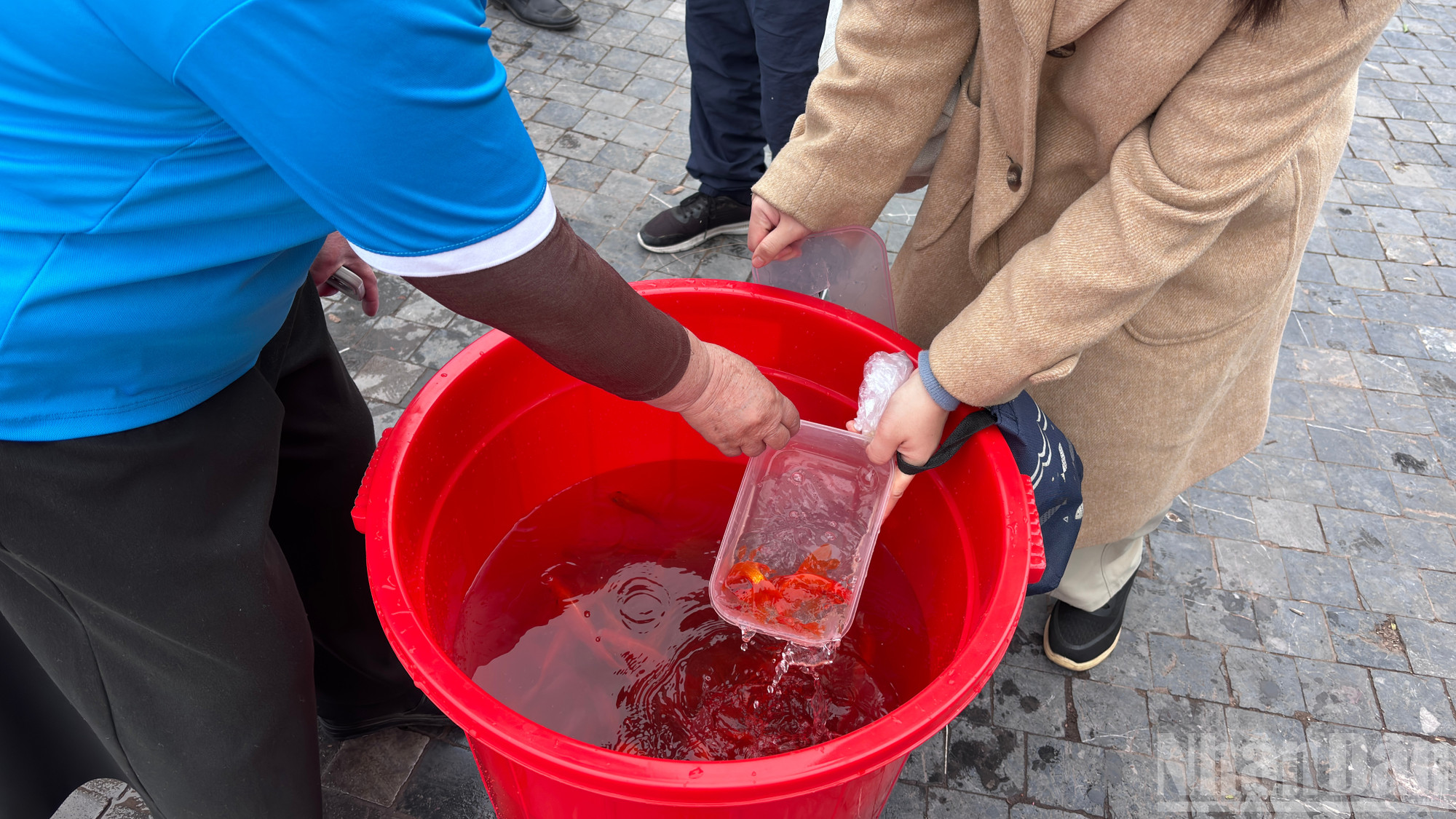 Hình ảnh người dân phóng sinh cá trong ngày Tết ông Công ông Táo.
