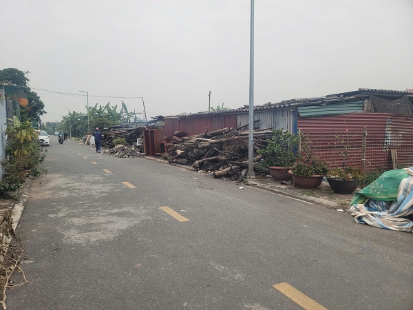 Bên cạnh đó, dọc tuyến "đường mới" còn xuất hiện tình trạng tập kết vật liệu, phế liệu (gỗ, đất đá, đồ đạc…) gây nhếch nhác, làm mất mỹ quan khu vực trung tâm xã, đồng thời tiềm ẩn nguy cơ mất an toàn giao thông và cháy nổ.