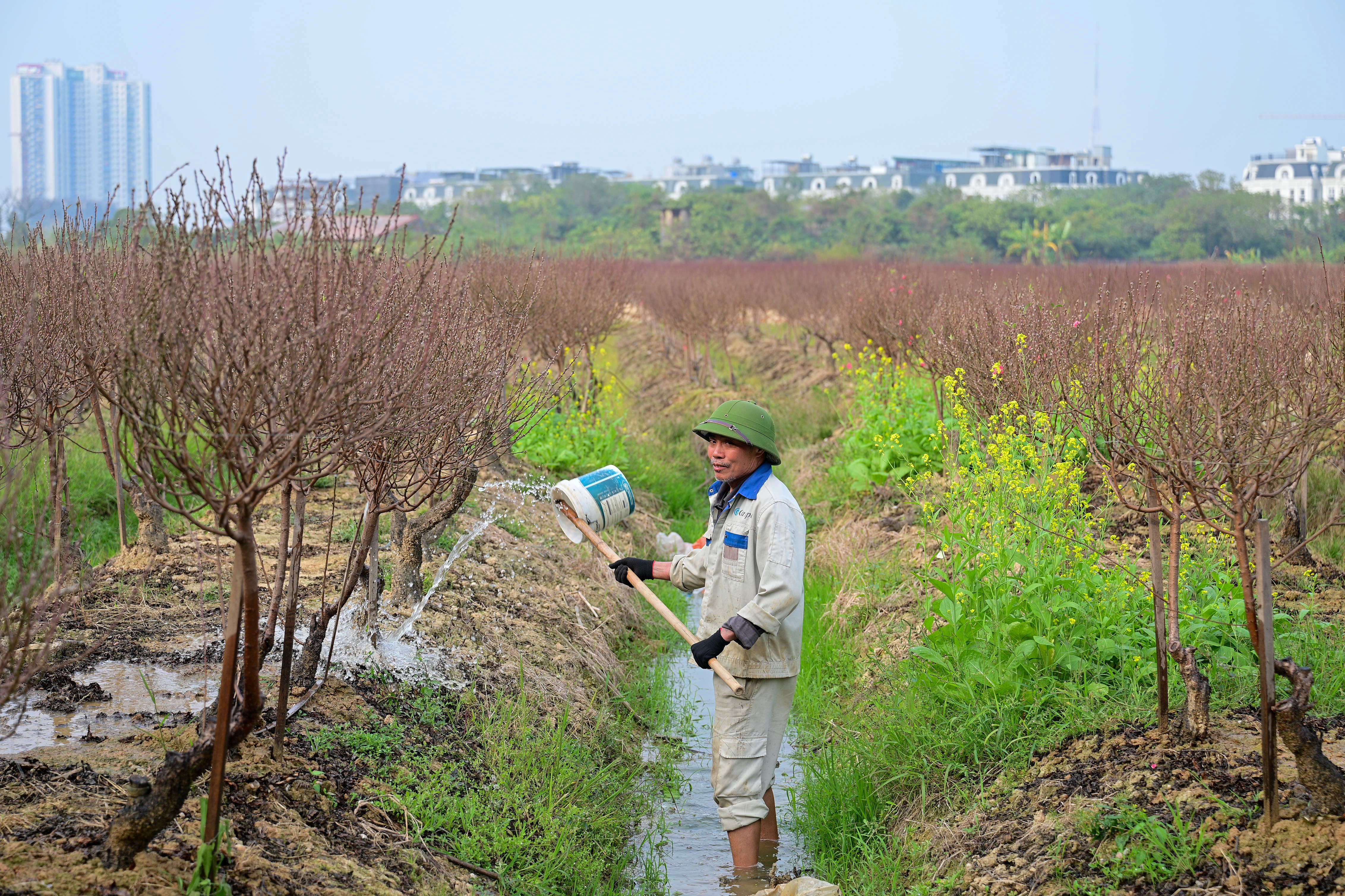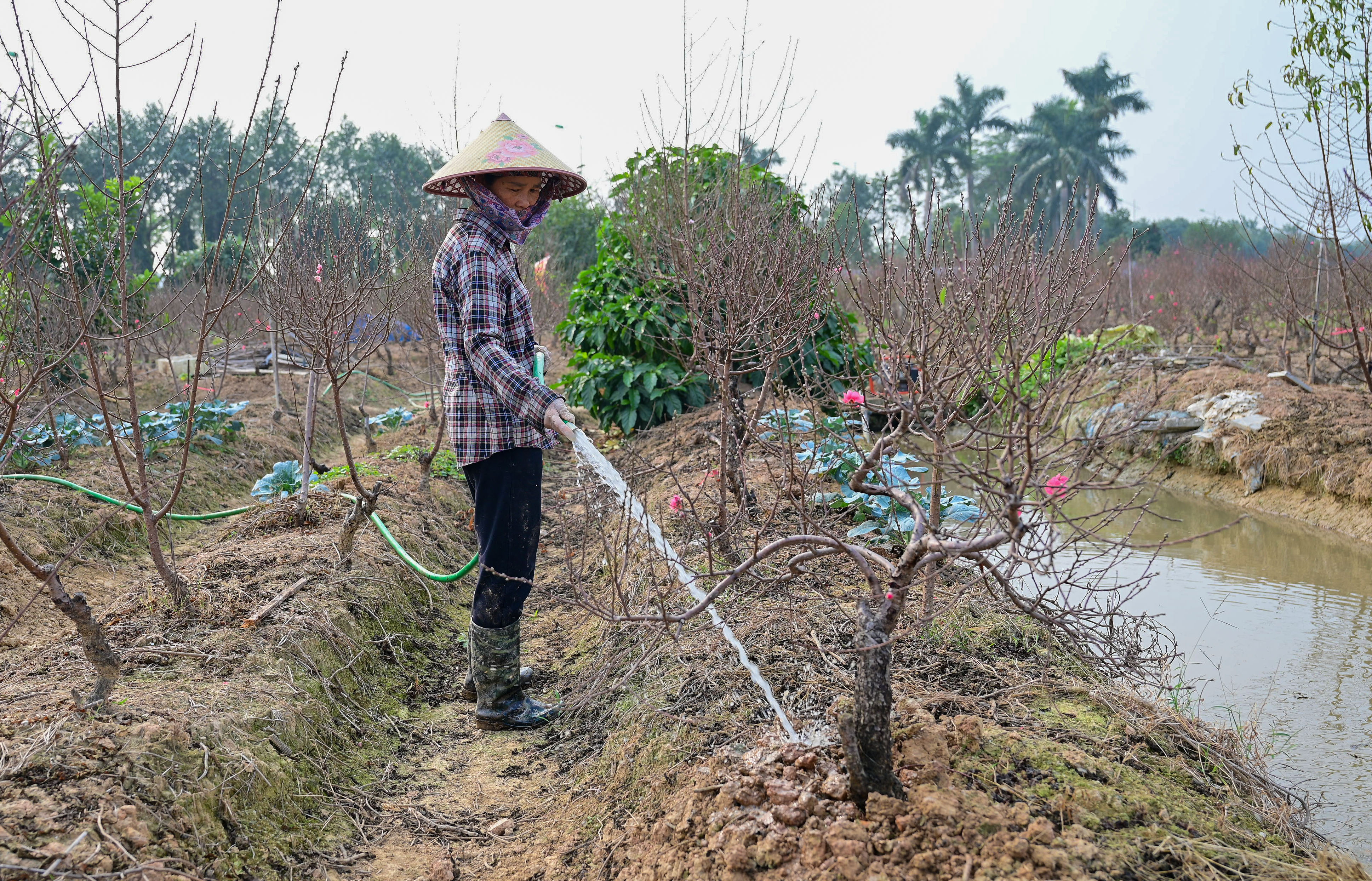 Trong khi đó, tại làng trồng đào La Cả (phường Hà Đông, Hà Nội), phần lớn diện tích đang ở giai đoạn ra nụ, hứa hẹn một mùa đào rơi đúng dịp tết, chỉ có một số cây đào nở sớm khiến người trồng đào thấp thỏm.