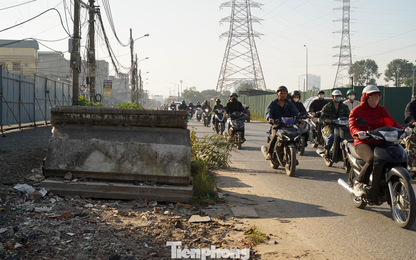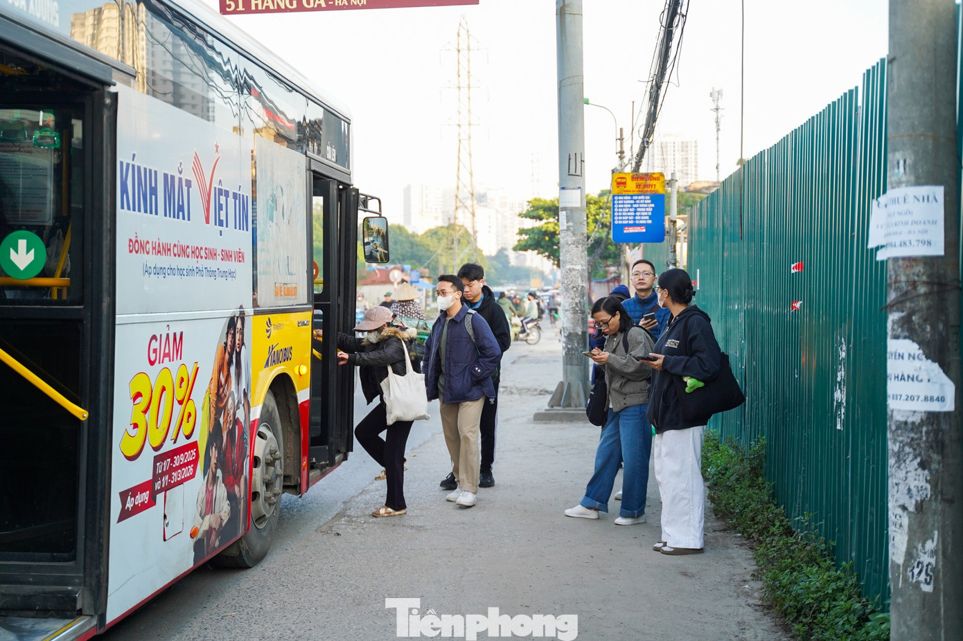 Bên cạnh đó, nhiều người dân phải đứng chờ xe buýt ngay sát hàng rào công trường, cạnh mép đường, gây mất an toàn.