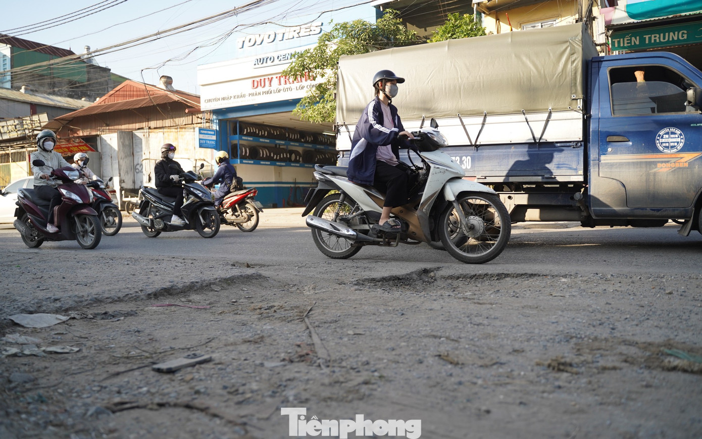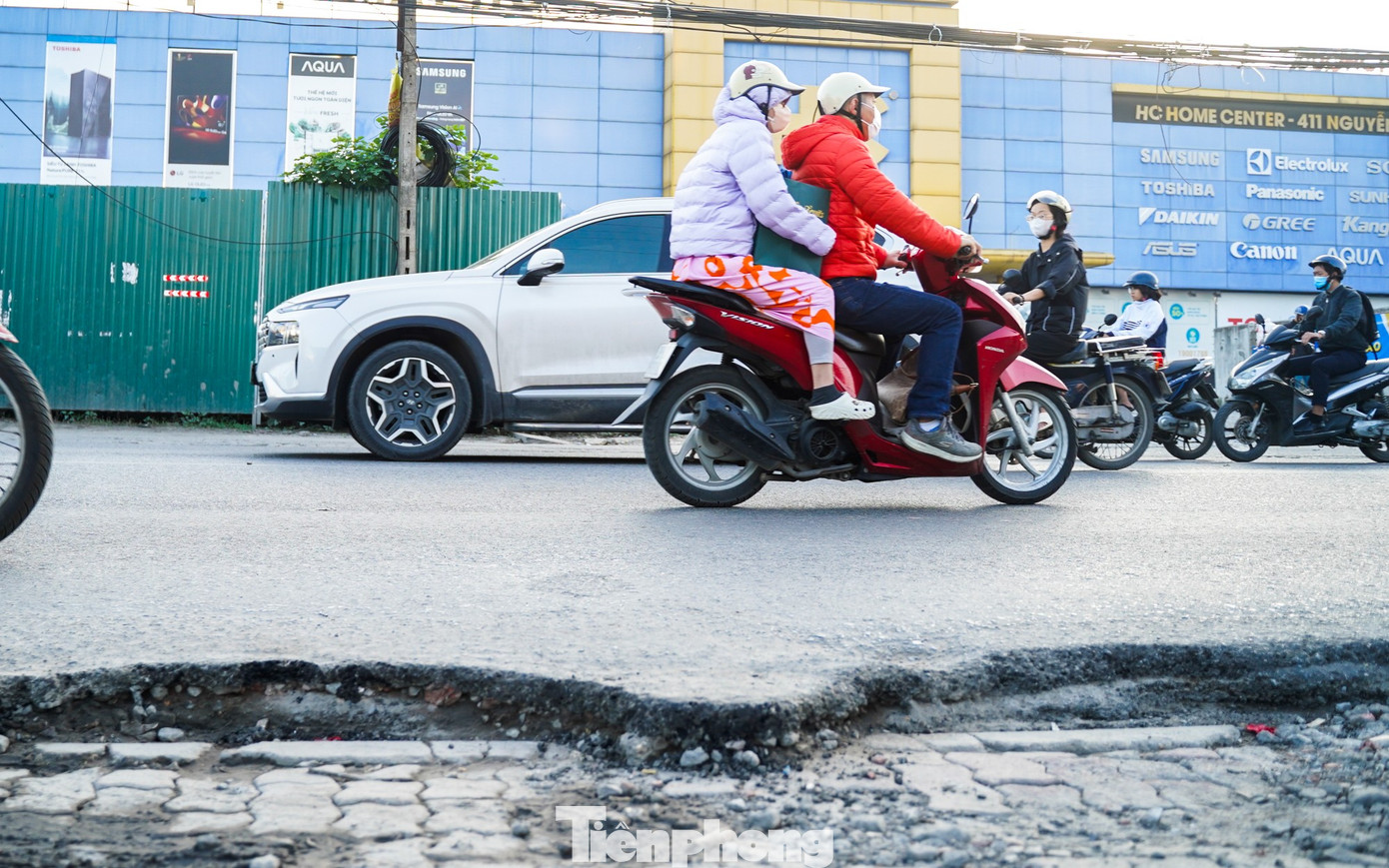Nhiều đoạn trên đường Tam Trinh xuống cấp nghiêm trọng, có thể thấy rõ bằng mắt thường.