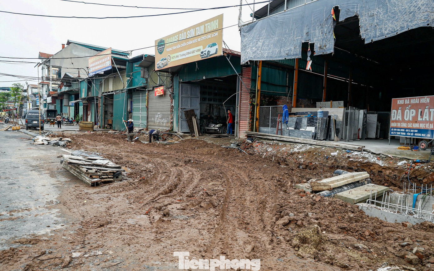 Hai bên đường, vật liệu xây dựng vứt ngổn ngang, không có rào chắn rõ ràng, biến khu vực này thành “cái bẫy” tiềm ẩn nguy hiểm, đặc biệt vào ban đêm.
