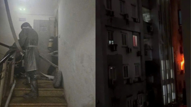 Đám cháy xảy ra tại tầng 4 chung cư 15B Đông Quan, phường Nghĩa Đô (Hà Nội).