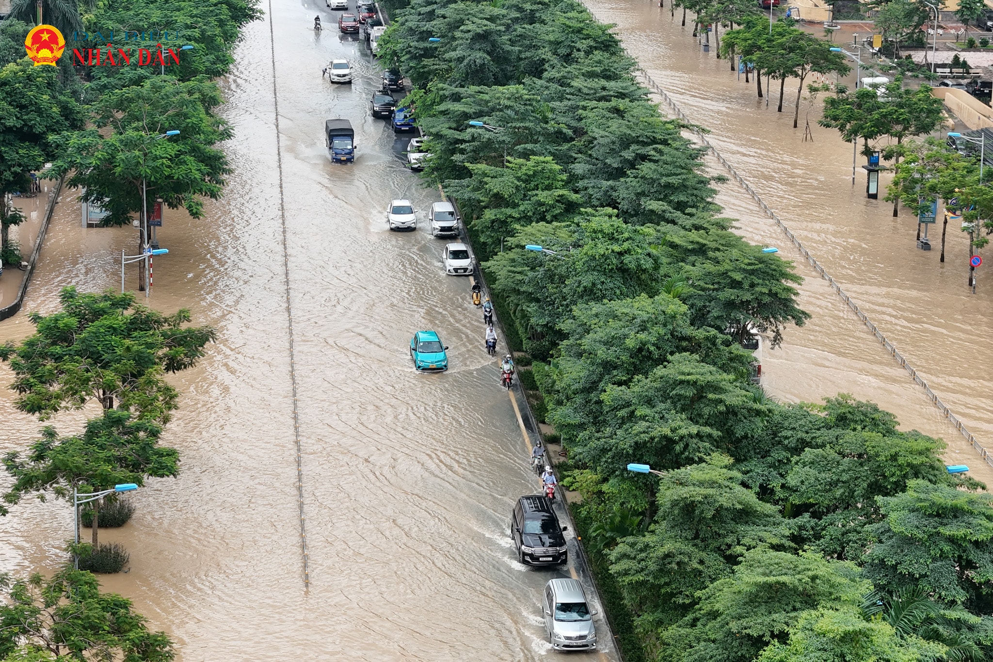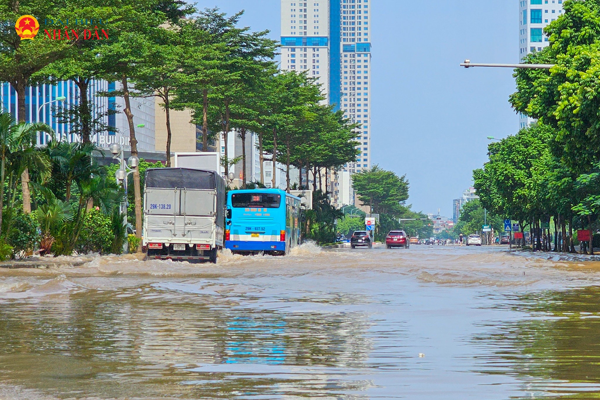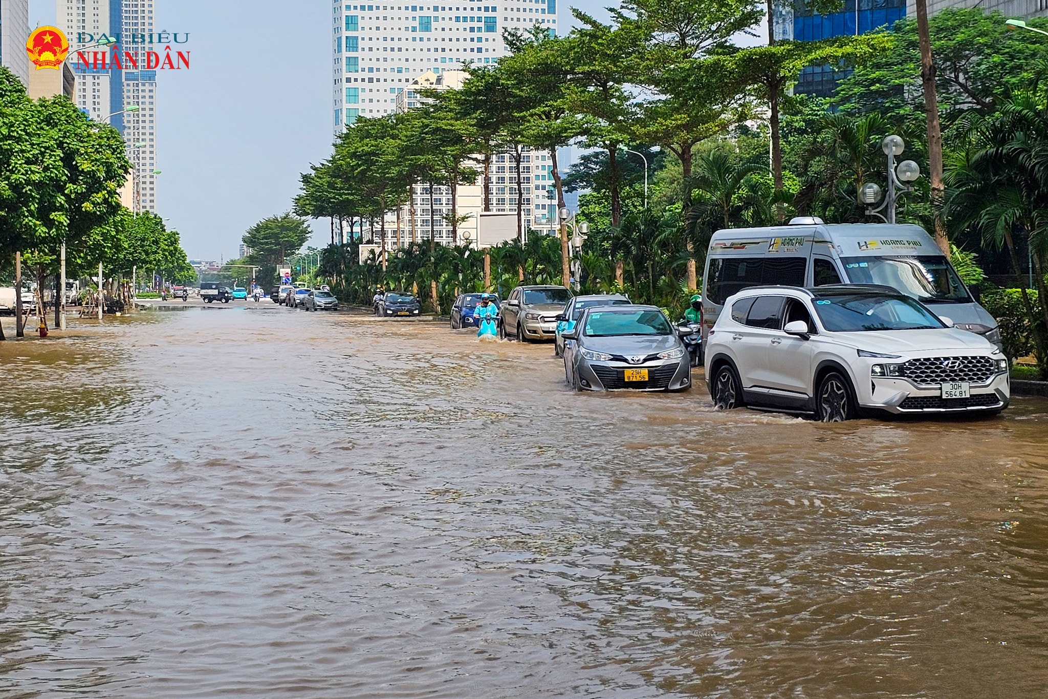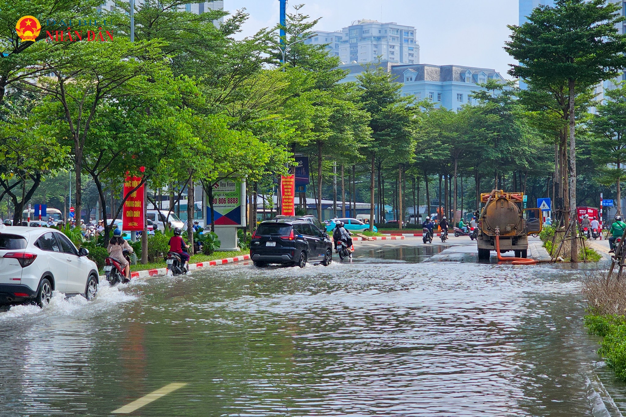 Cũng theo ghi nhận tại điểm ngập sâu trên phố Dương Đình Nghệ phía sau tòa nhà Keangnam