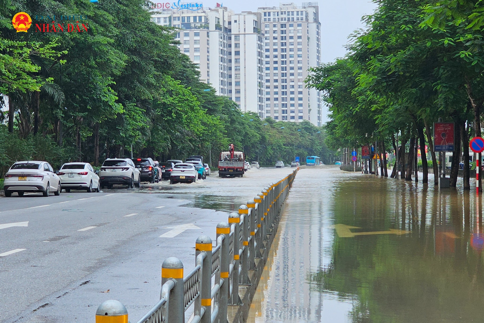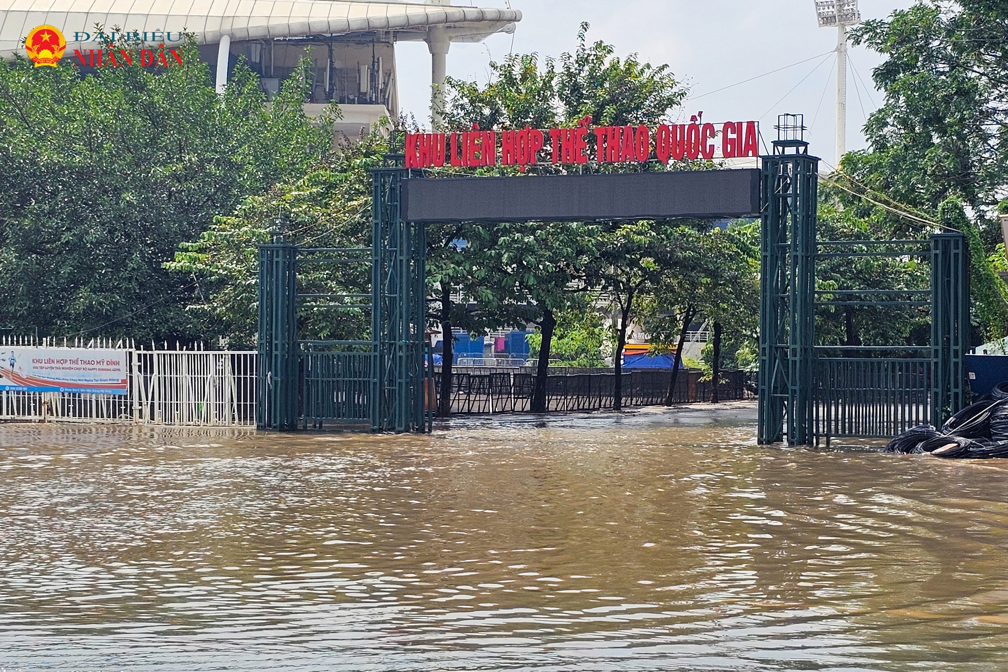 Đường Lê Đức Thọ đoạn qua sân vận động quốc gia Mỹ Đình cũng đang bị ngập sâu