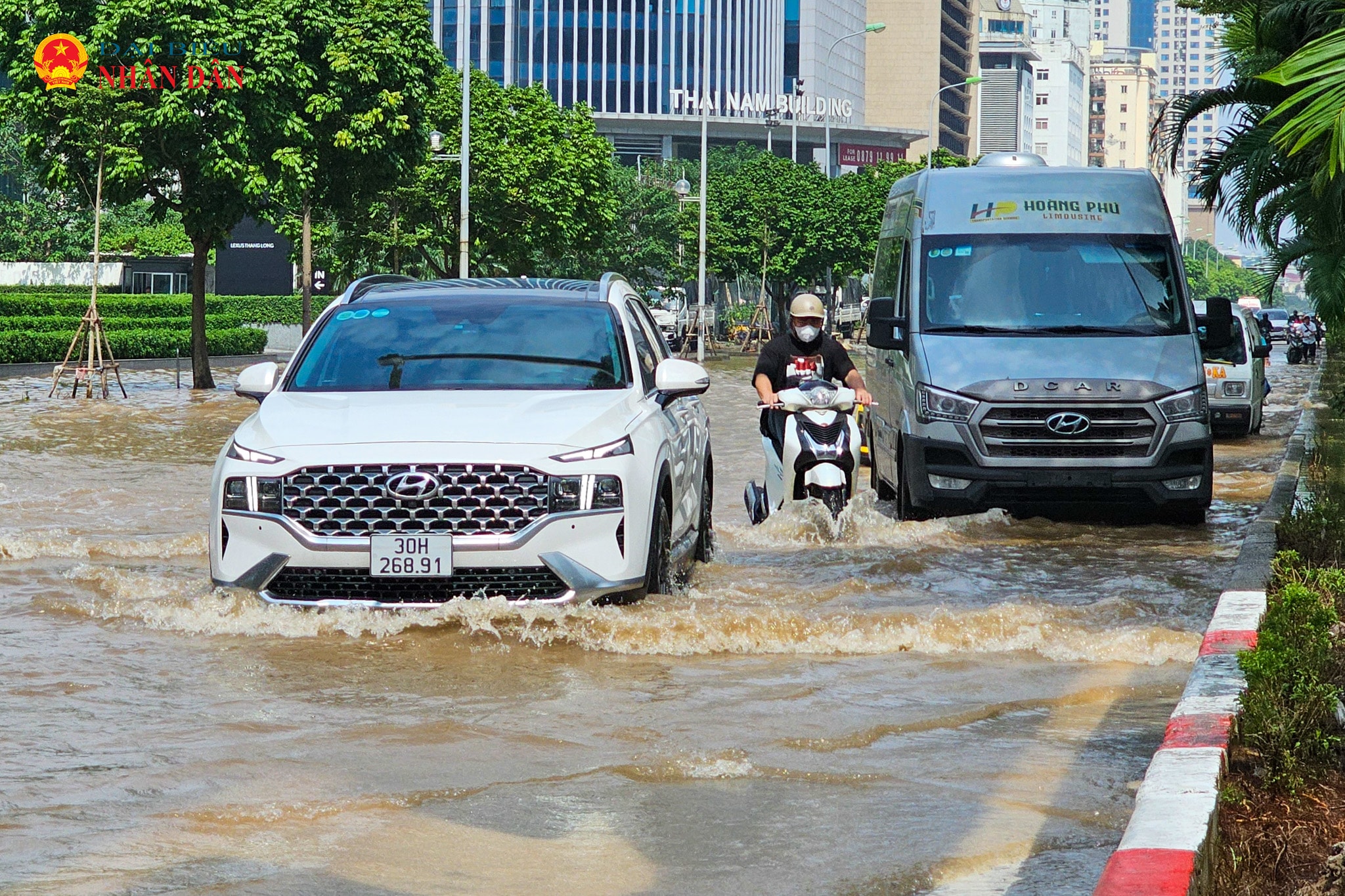 Theo ghi nhận của phóng viên, vào trưa ngày 8/10, tại đường Võ Chí Công đoạn qua tòa nhà Lotte Tây Hồ vẫn đang bị ngập nặng