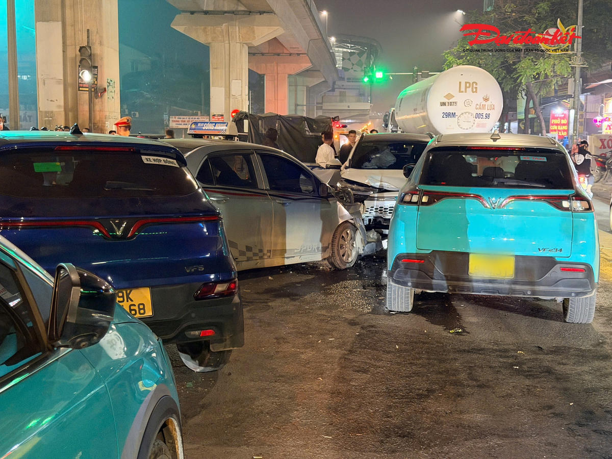 Khoảng 22h45 ngày 11/2, trên đường Quang Trung (phường Dương Nội, Hà Nội) xảy ra vụ tai nạn giao thông liên hoàn giữa 5 ô tô.