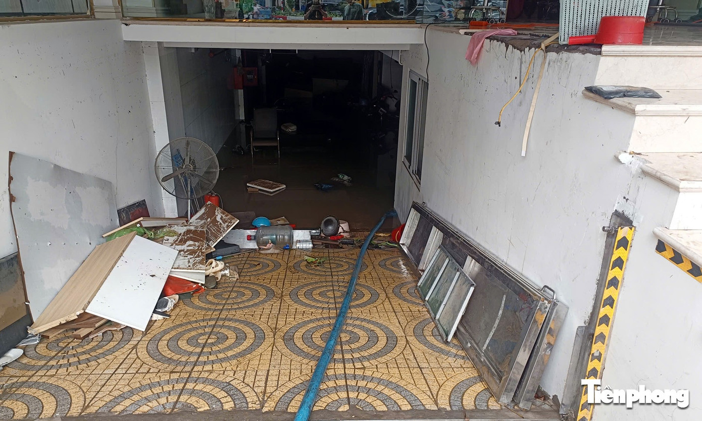 Ghi nhận vào sáng 1/10, nhiều hầm ngôi nhà cao tầng trên phố Liễu Giai vẫn ngập trong bùn, nước sau trận mưa lớn kéo dài nhiều giờ đồng hồ, bắt đầu từ sáng đến chiều ngày 30/9.