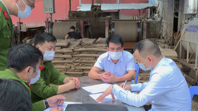 Một đơn vị sản xuất xả thải chui bị lực lượng chức năng lập biên bản.