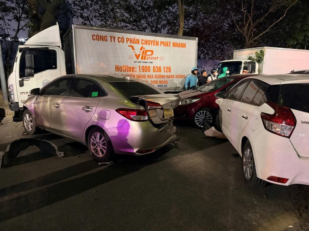 Tại hiện trường, có 5 ô tô và 2 xe máy bị hư hỏng nặng, nhiều bộ phận phương tiện vỡ vụn. Giao thông qua khu vực bị ảnh hưởng trong một thời gian ngắn.