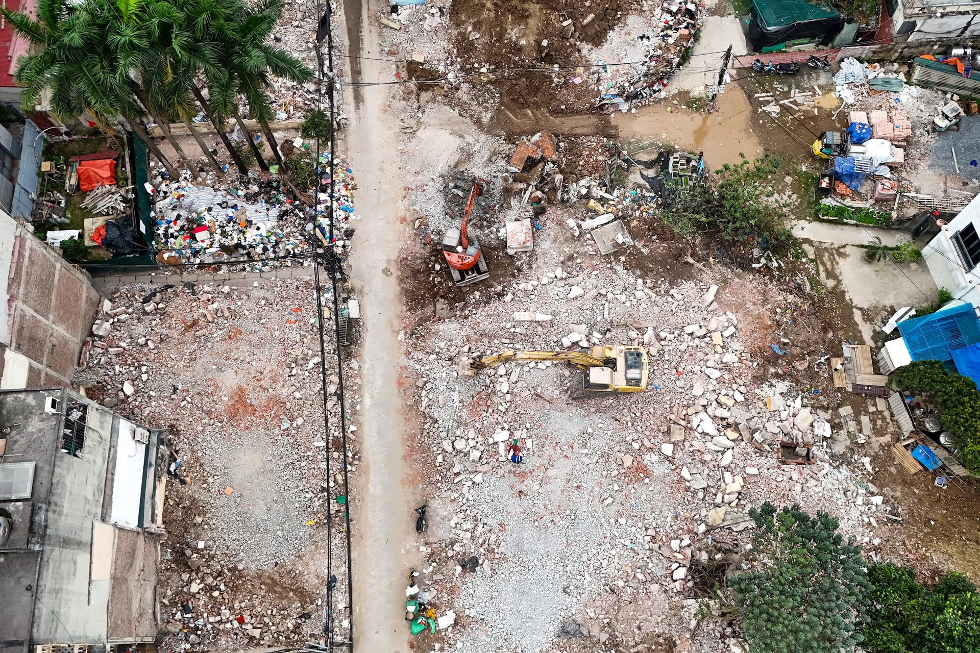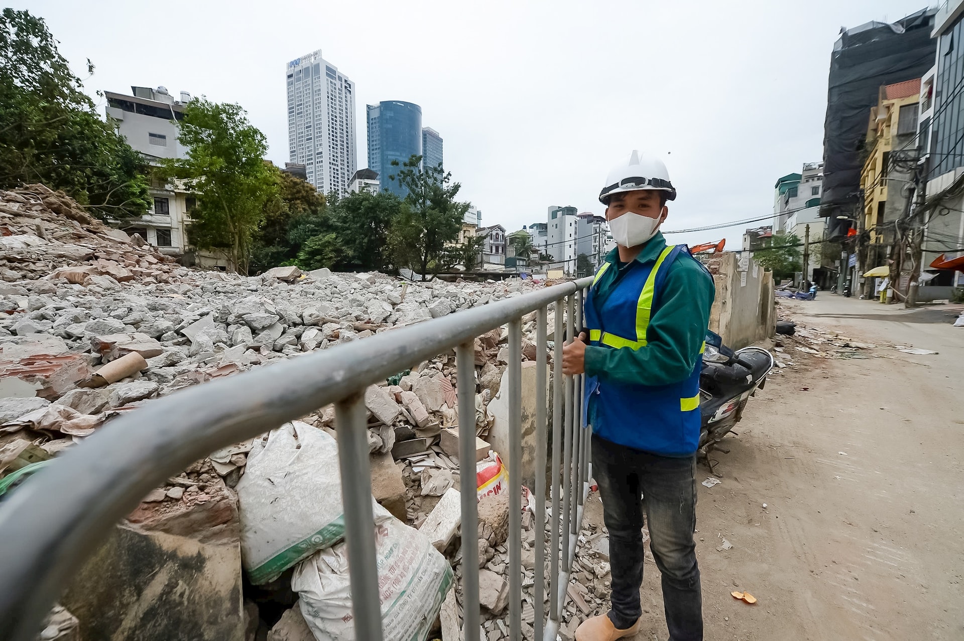 Tại khu vực từ đường Cầu Giấy vào Khu đô thị mới Dịch Vọng, nhiều máy xúc, xe tải cùng các thiết bị chuyên dụng hoạt động liên tục để tháo dỡ các hạng mục cuối cùng. Không khí thi công diễn ra khẩn trương với sự tham gia của nhiều lực lượng nhằm bảo đảm tiến độ đề ra.