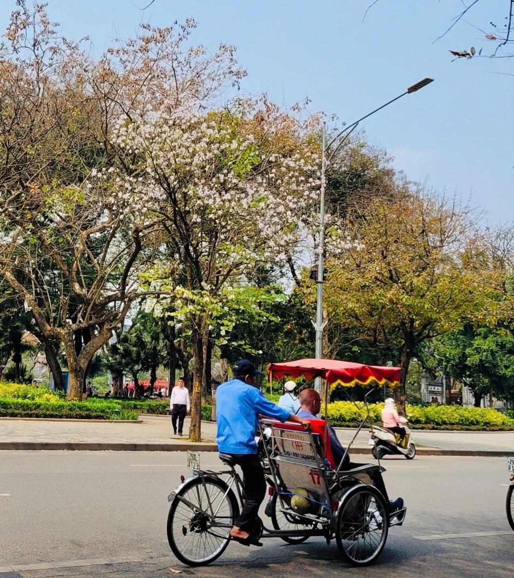 Khách quốc tế ngồi xích lô dạo quanh hồ Gươm