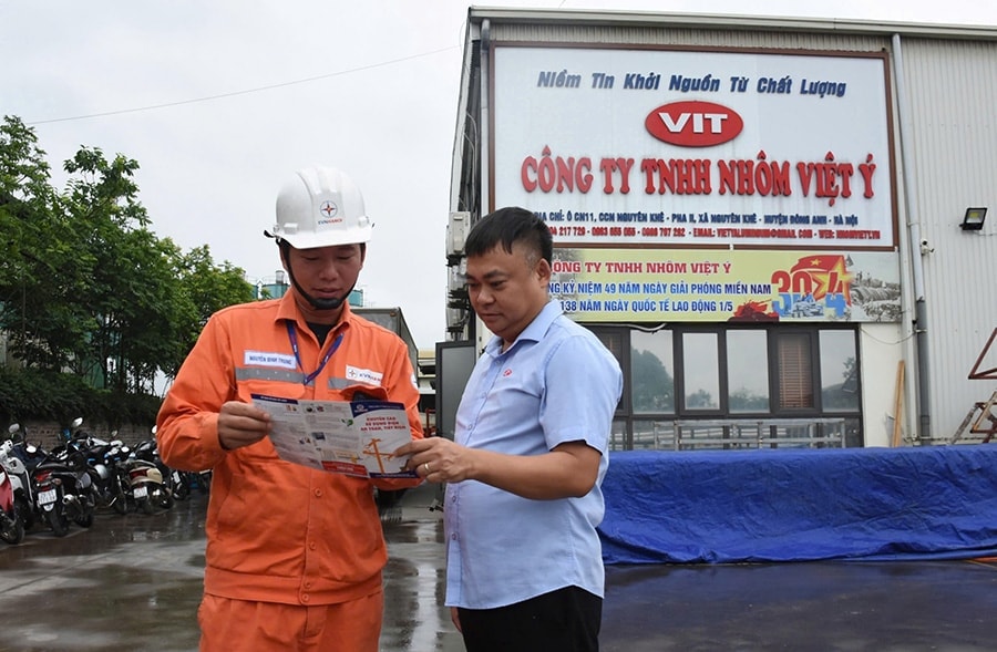 Nhân viên Tổng công ty Điện lực thành phố Hà Nội tuyên truyền sử dụng điện an toàn, tiết kiệm cho khách hàng. Ảnh: Việt Anh