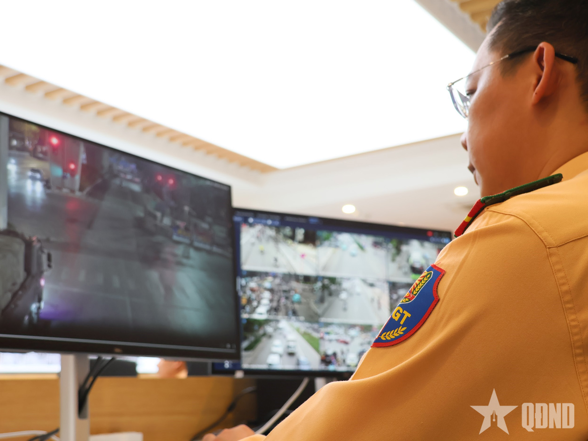 CSGT ứng trực, xử lý tình huống tại Trung tâm điều khiển giao thông.